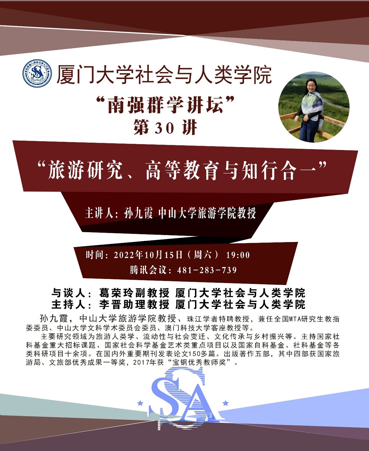 孙九霞,中山大学旅游学院教授、博导,珠江学者特聘教授,兼任全国MTA研究生教指委委员、中山大学文科学术委员会委员、澳门科技大学客座教授等。