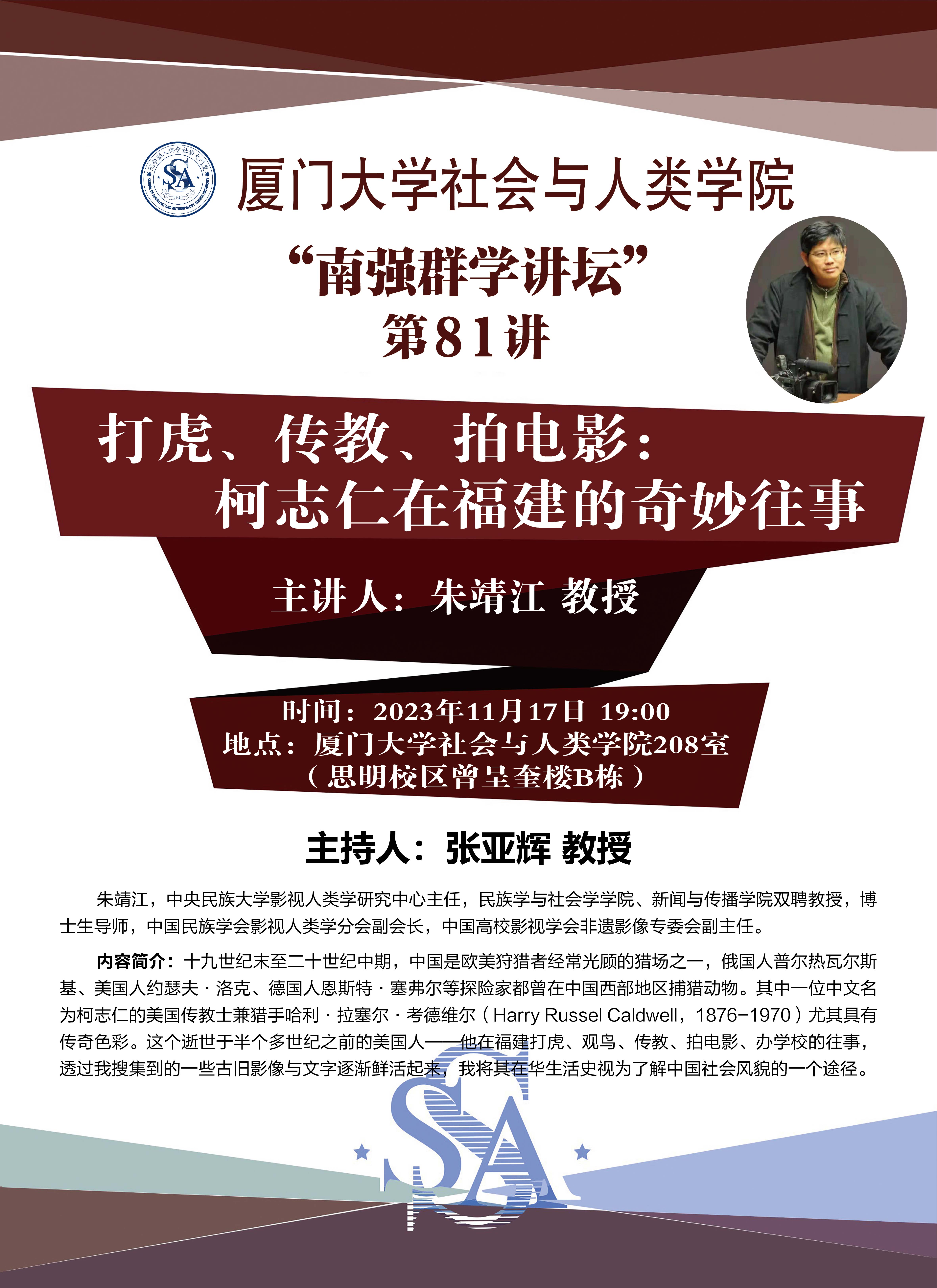 地点:厦门大学社会与人类学院208室(思明校区曾呈奎楼B栋)