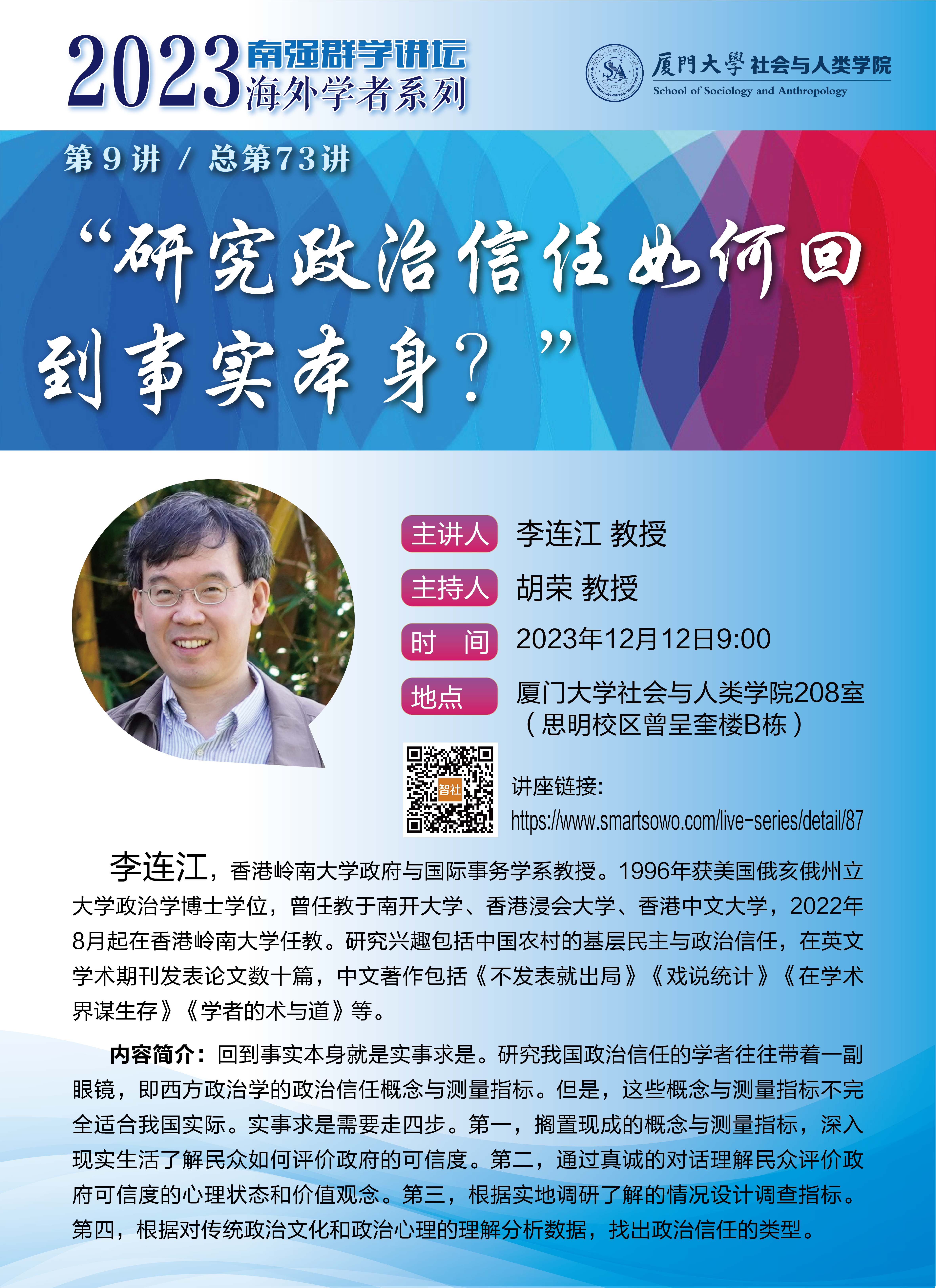 地点:厦门大学社会与人类学院208室(思明校区曾呈奎楼B栋)