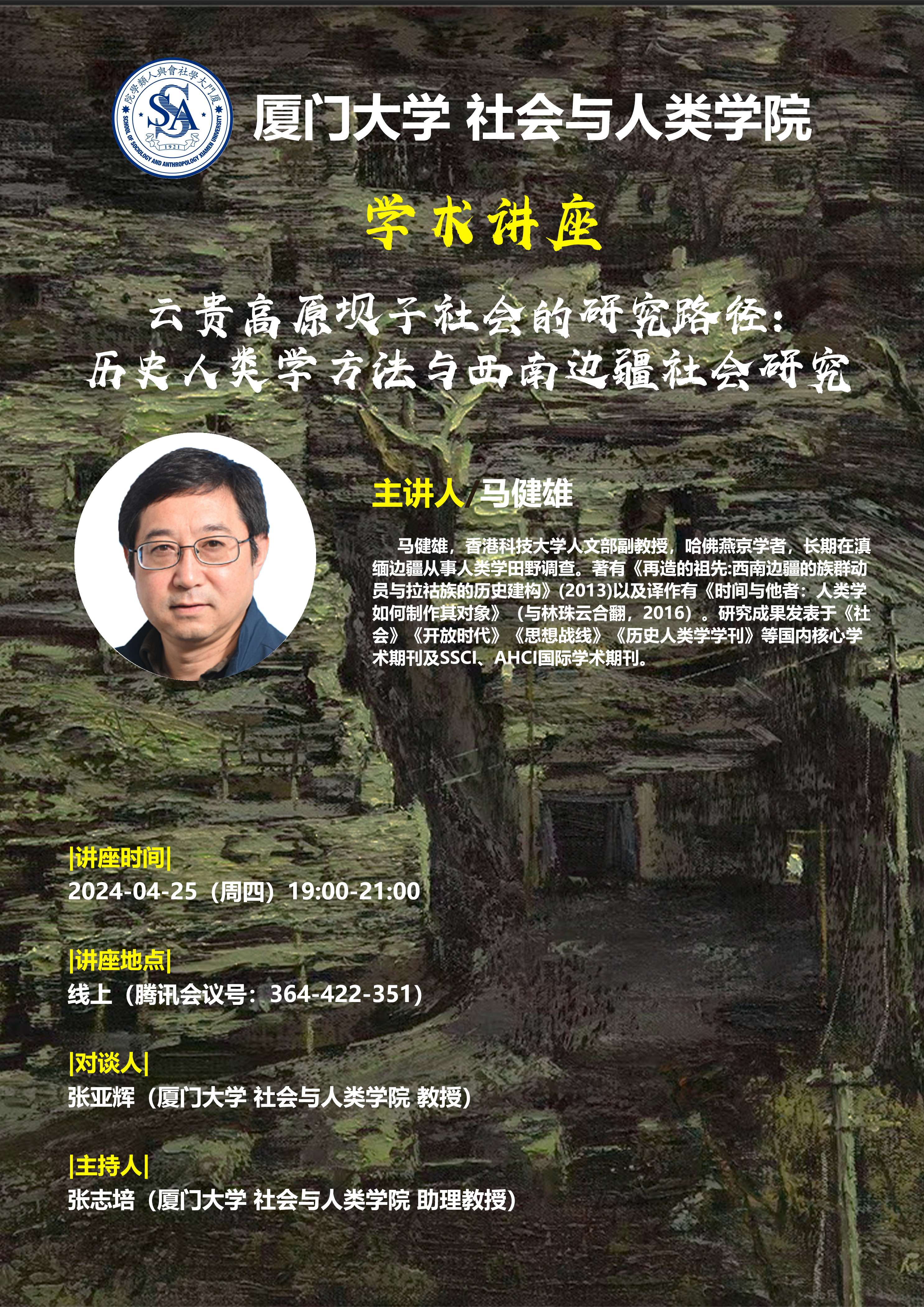 主讲人:马健雄,香港科技大学人文部副教授,哈佛燕京学者,长期在滇缅边疆从事人类学田野调查。著有《再造的祖先:西南边疆的族群动员与拉祜族的历史建构》(2013)以及译作有《时间与他者:人类学如何制作其对象》(与林珠云合翻,2016)。研究成果发表于《社会》《开放时代》《思想战线》《历史人类学学刊》等国内核心学术期刊及SSCI、AHCI国际学术期刊。