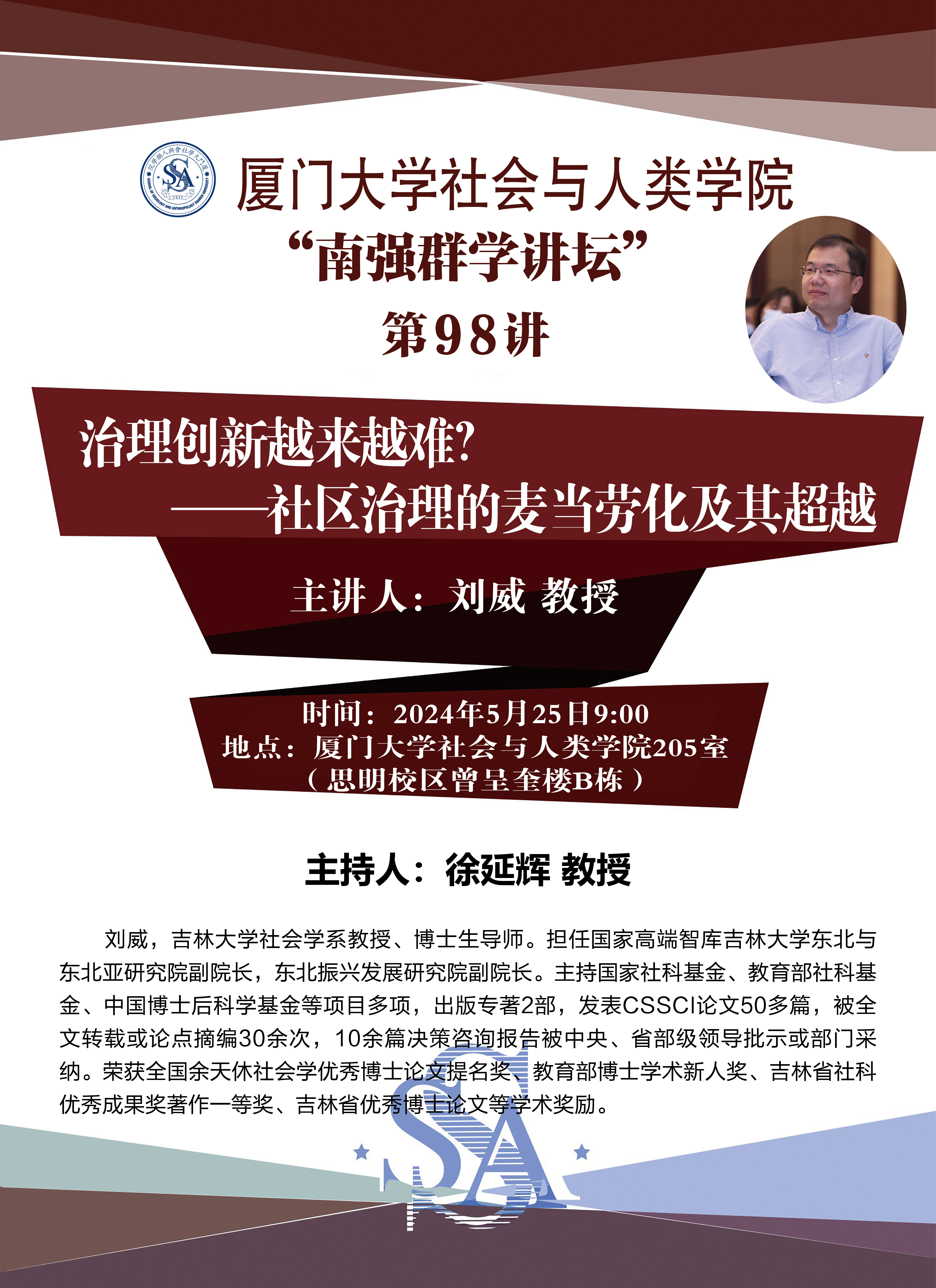 地点:厦门大学社会与人类学院205室(思明校区曾呈奎楼B栋)