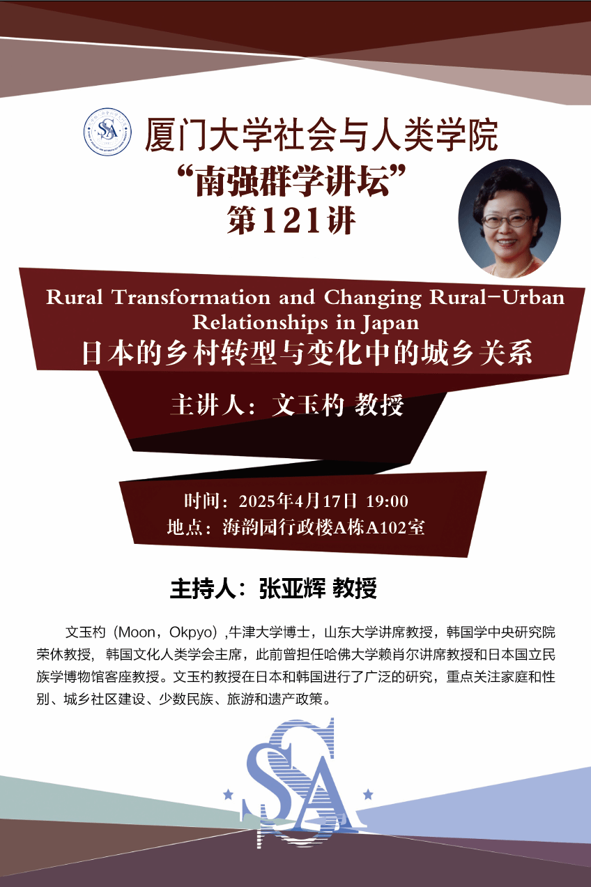 文玉杓 (Moon,Okpyo) ,牛津大学博士,山东大学讲席教授,韩国学中央研究院荣休教授, 韩国文化人类学会主席,此前曾担任哈佛大学赖肖尔讲席教授和日本国立民族学博物馆客座教授。文玉杓教授在日本和韩国进行了广泛的研究,重点关注家庭和性别、城乡社区建设、少数民族、旅游和遗产政策。