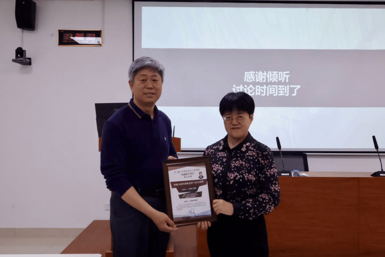 活动最后,徐延辉教授为宣朝庆教授颁发“南强群学讲坛”纪念牌。