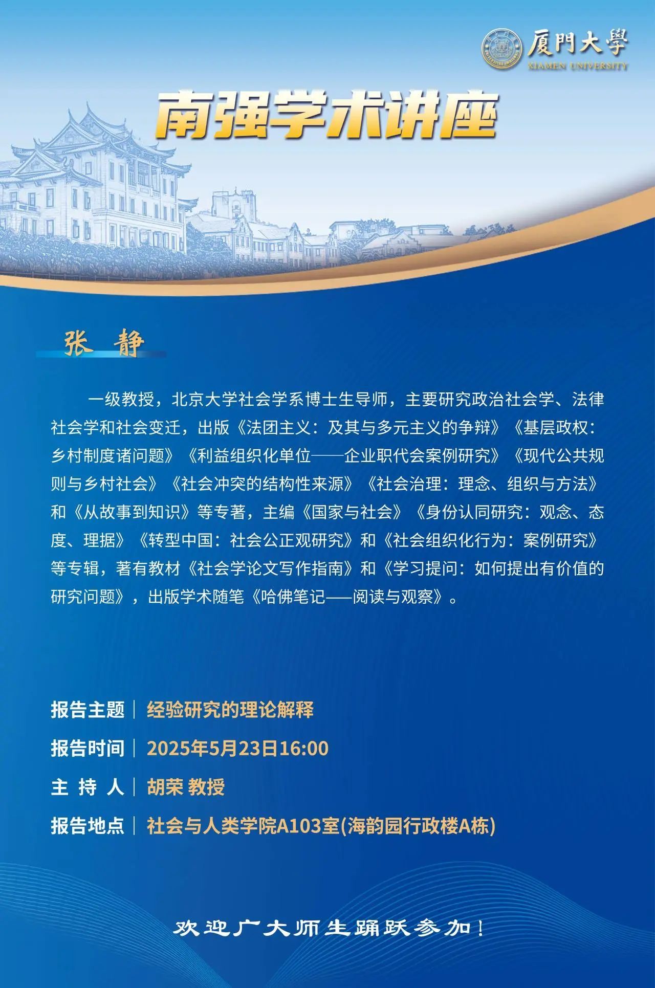 报告地点 | 社会与人类学院A103室(海韵园行政楼A栋)
