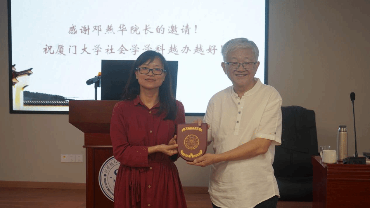 讲座结尾,邓燕华教授向周晓虹教授颁发“南强学术讲座”纪念牌,本次讲座圆满落下帷幕。