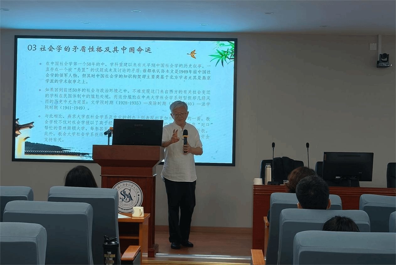 2025年5月19日下午,南强学术讲座“中国社会学的知识锻造——一种知识社会学的本土解读”在海韵园行政楼A栋201室举行。本次讲座由南京大学人文社会科学资深教授周晓虹主讲,社会与人类学院院长邓燕华教授主持。