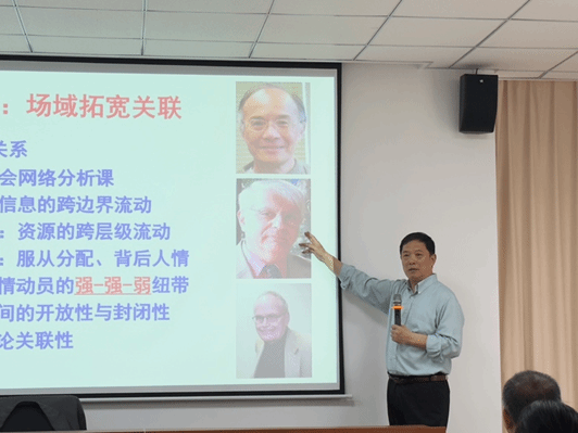 此外,边教授举了三个讲好中国故事的例子。一是其提出的“强关系”理论,边教授提到了格兰诺维特的弱关系理论最初给其带来的疑惑,并介绍了其导师林南先生从垂直的视角提出跨层级流动的社会资源逻辑,最后提出强关系理论以证明如何突出新情境。二是“关系上升论”,在关系的微观机制中区分出了信息资源与人情资源,同时在宏观机制中提出了中国在体制不确定性和市场竞争性中的关联。三是“私营企业核心关系圈超稳论”,基于中国私营企业的市场理性与关系偏好现象与实证调查,提出了“小而立足、中而扩大、大而争利”的结论。最后,边教授得出并介绍了两点启示,要讲好中国故事,不仅要承认知识连续性,而且还要坚持文化多元性。