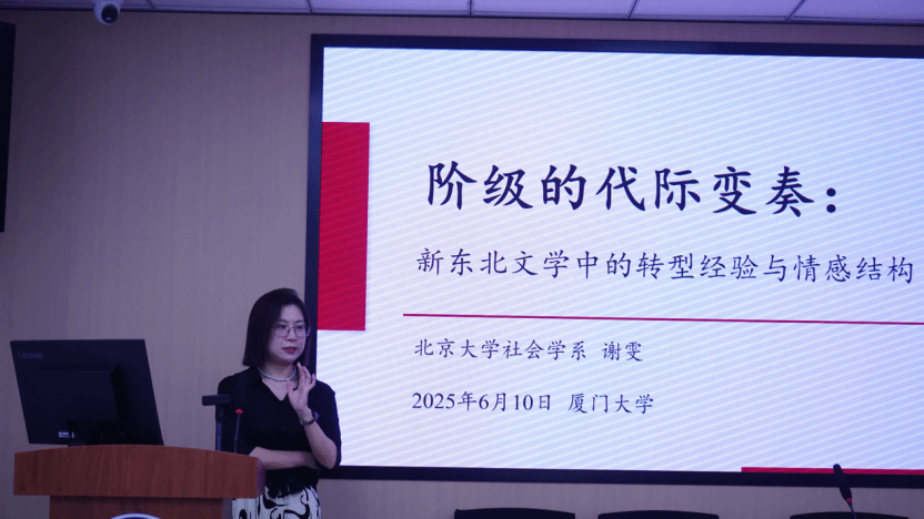 6月10日下午,厦门大学社会与人类学院南强群学讲坛第138讲在海韵园行政楼A栋102室举行。本次讲座的题目是“阶级的代际变奏:新东北文学中的转型经验与情感结构”,由北京大学社会学系谢雯老师主讲,厦门大学社会与人类学院刘子曦老师主持。王利兵、李潇、罗思雨、徐榕榕等老师参与对谈。