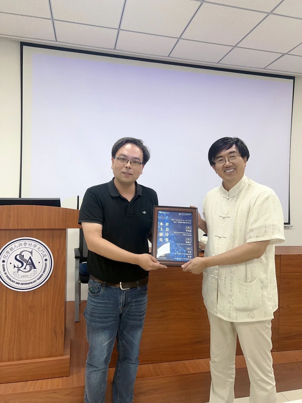 活动最后,陈福平老师向罗家德老师颁发“南强群学讲坛”纪念牌。