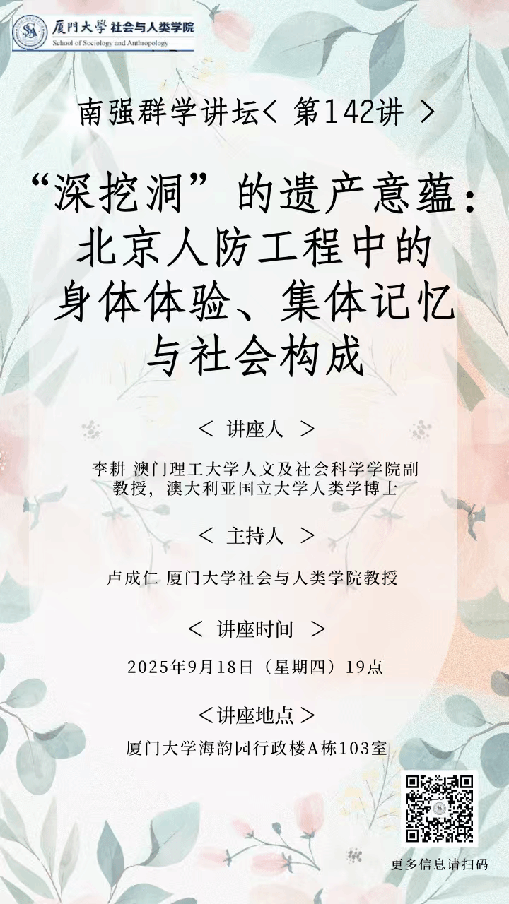 讲座主题 | “深挖洞”的遗产意蕴:北京人防工程中的身体体验、集体记忆与社会构成