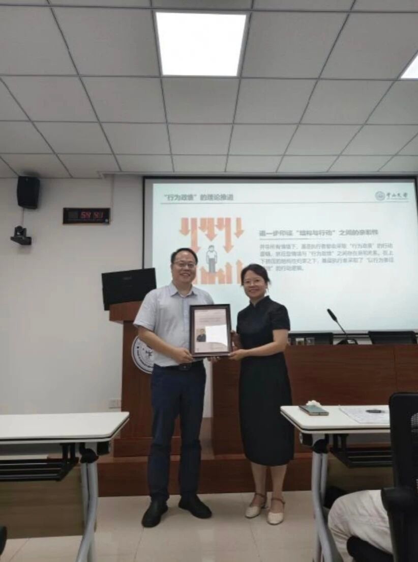 在活动尾声,龚文娟教授为李棉管教授颁发了“南强群学讲坛”纪念牌,本次讲座圆满落下帷幕。