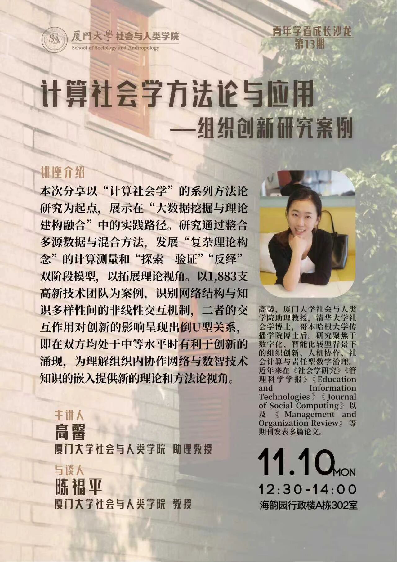 在数字化与智能化的时代,组织、个体与技术的关系正在被重新书写。本报告以“计算社会学方法论与应用”为主题,对应的现实问题是从社会网络与知识创新出发,探讨当知识、关系与算法共同塑造人类协作时,创新与变革如何发生,以及社会学如何在大数据时代重新连接理论、方法与组织实际问题。