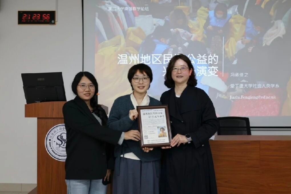 2026年3月8日晚,“南强群学讲坛”第158讲在海韵园行政楼A栋103教室举行。本次讲座以“温州地区民间公益的兴起与演变”为题,由英国爱丁堡大学人类学助理教授冯蒋佳之主讲,我院龚浩群教授主持。
