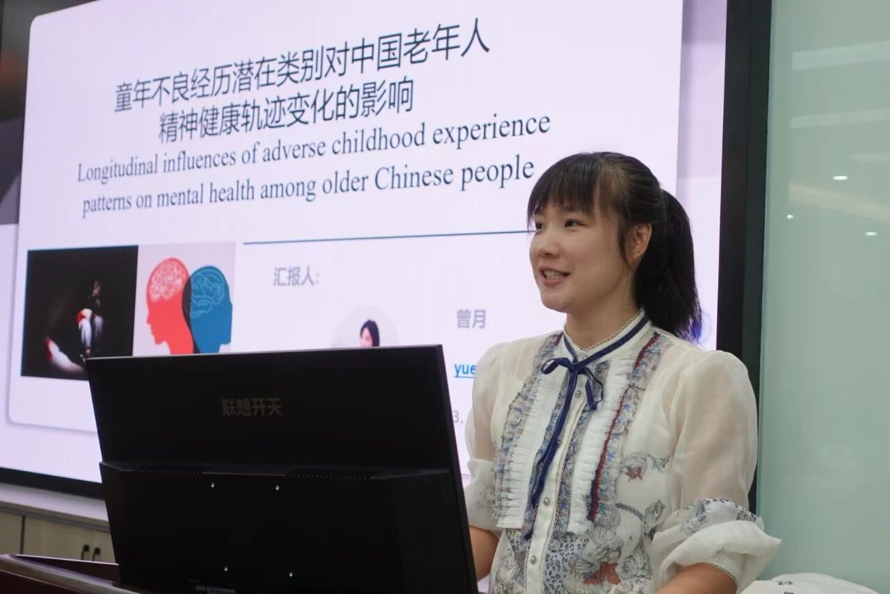 交流环节,与谈人徐嘉树老师关注"选择性死亡偏误"是否影响研究结论,并提问能否追踪媒介使用分组的未来演变;李潇老师建议将媒介使用与社会经济地位研究串联,探讨结构性差异;魏爱棠老师指出媒介使用是可干预的切入点,社工帮助老年人跨越"数字鸿沟"或许能缓解早期劣势;汪子臻老师则犀利反思"国际通用量表"的文化适应性。曾月老师坦诚回应,量表选择需在科学性与本土性间寻找平衡,而童年不良经历对抑郁症状的不显著影响,恰恰提示生命历程中在"保护性因素"值得未来挖掘。