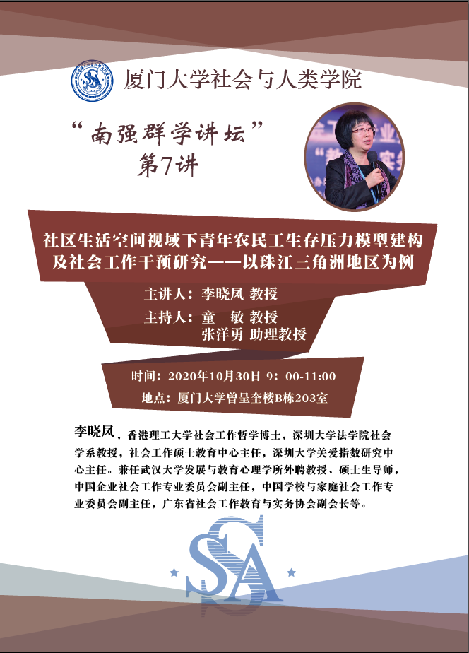 青年农民工在社会融入的进程中遭遇了多重生存压力,但现有研究聚焦于心理学主流范式,未能从社区环境层面回应青年农民工的生存压力问题。本讲座基于第一手实证调查资料,在社区空间理论视域下,整合压力源、压力感知及压力症状等压力发展路径,阐述社区空间视域下青年农民工生存压力的解释模型,以此对话心理学的认识论与个体层面的论述策略。同时,针对青年农民工在职场工作、家庭生活、人际交往、精神文化等多维社区生活空间的压力,以深圳市龙华区榕树家园项目为例,结合EAP(员工协助方案)模式、工会模式、临床模式,诠释社区空间视域下企业社会工作的实践策略与干预模式。