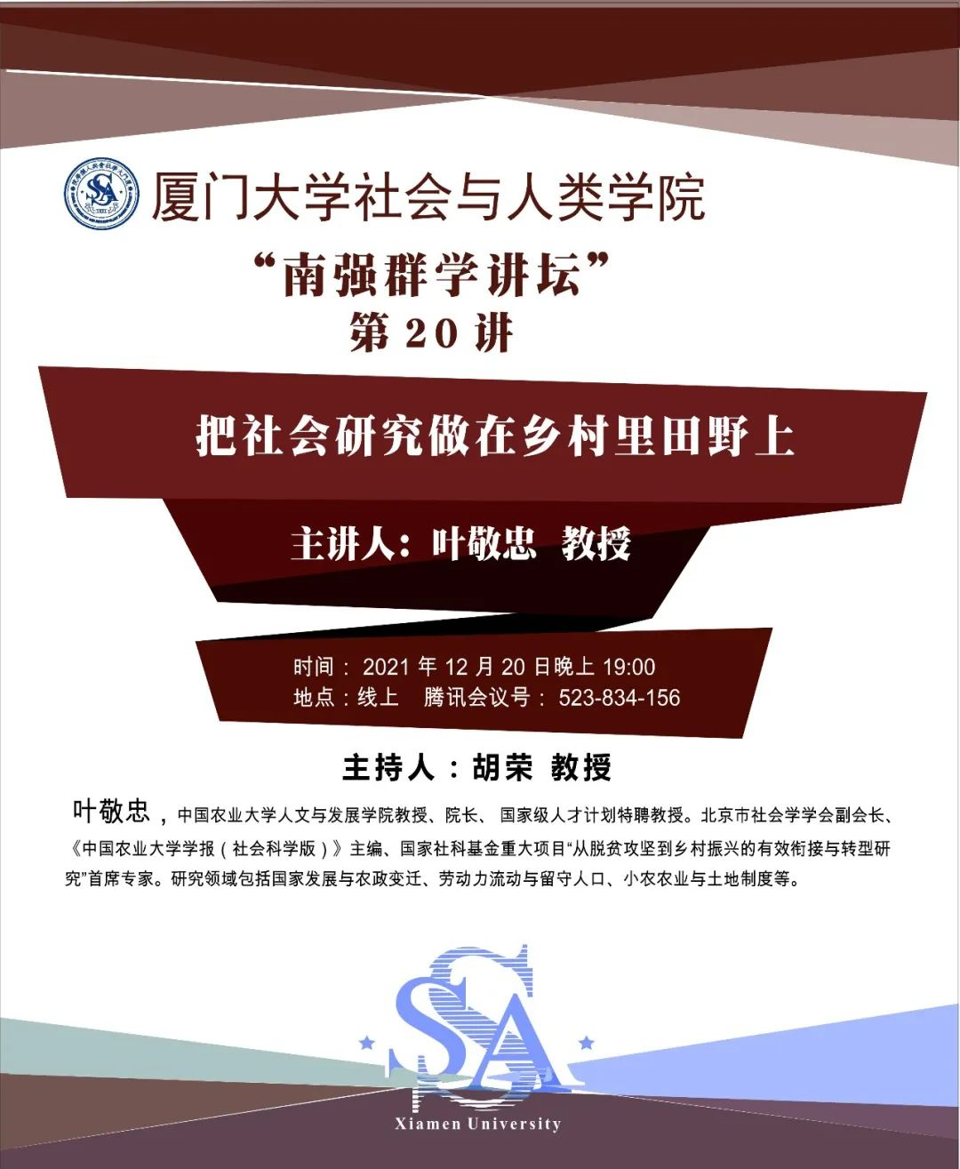 【南强群学讲坛】第20讲:把社会研究做在乡村里田野上