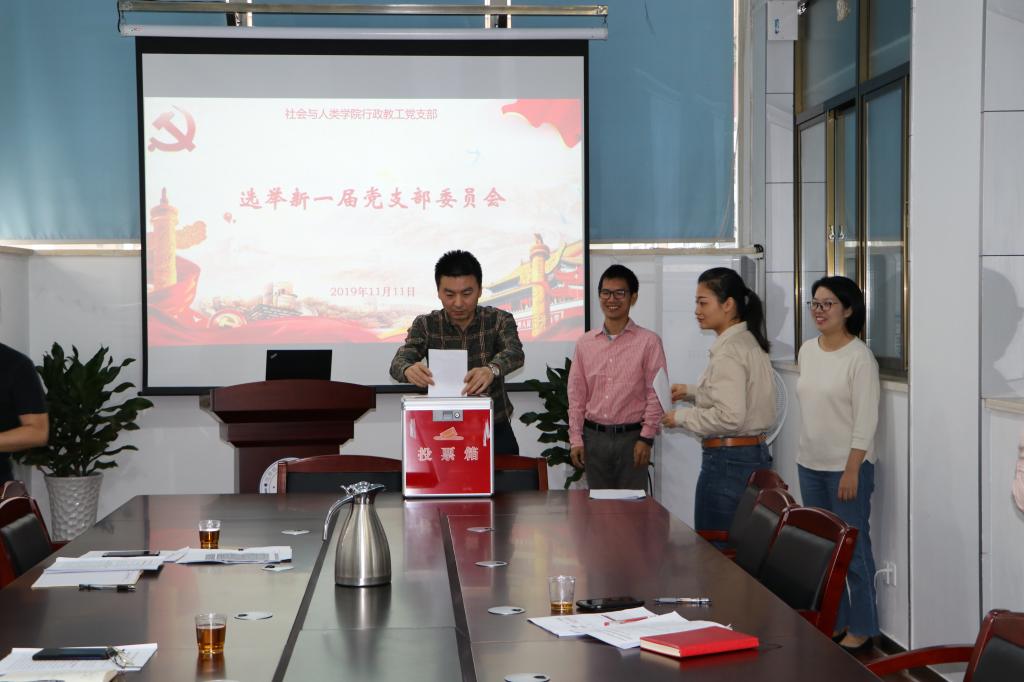 2019年11月11日上午,社会与人类学院行政教工党支部举行第一次支部党员大会,党支部全体9名党员出席大会,选举并产生新一届党支部委员,大会由廖晓波同志主持。