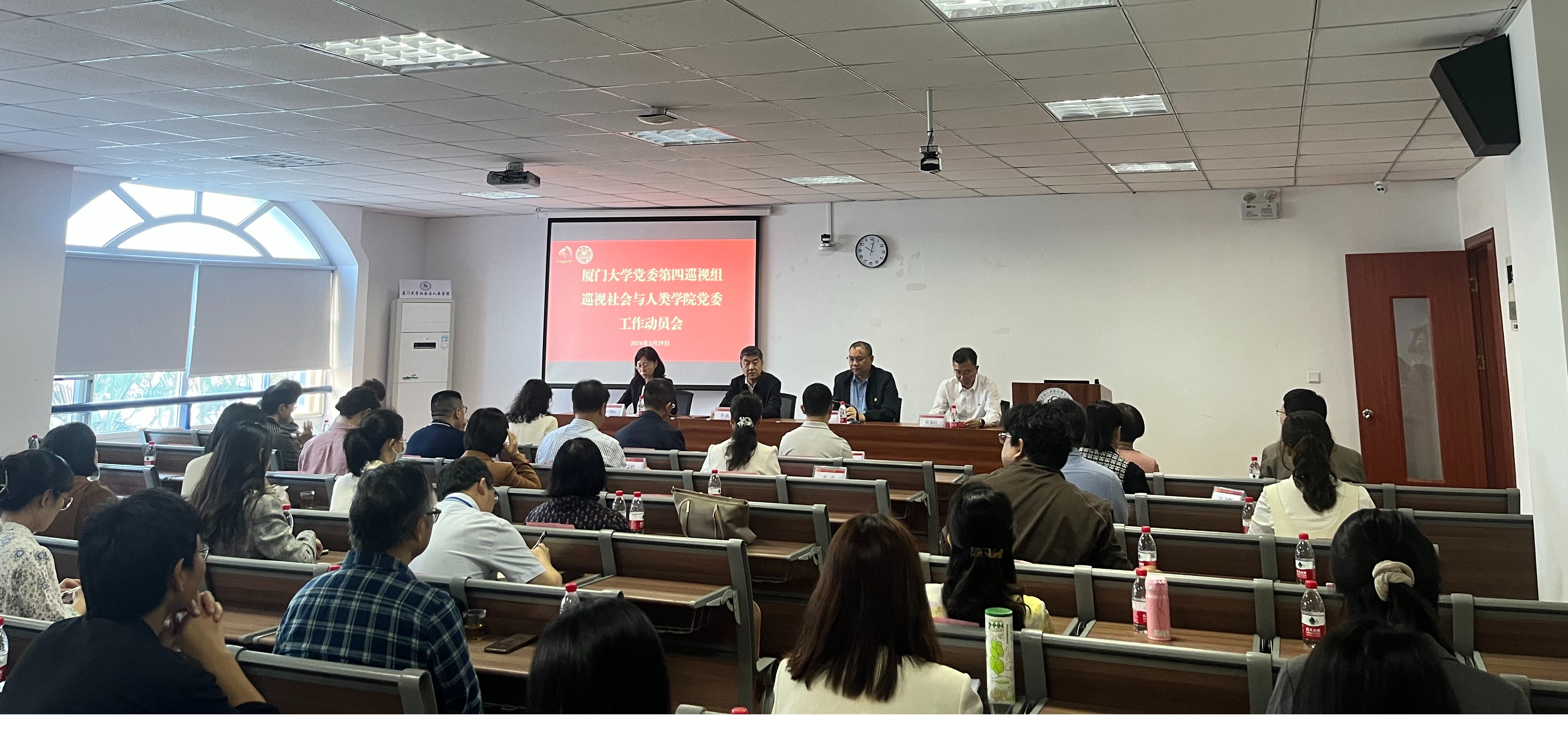 3月29日上午,厦门大学党委第四巡视组巡视社会与人类学院工作动员会在曾呈奎楼B栋208教室召开。校党委副书记、纪委书记、国家监委驻厦门大学监察专员全海,校党委第四巡视组组长王康平、副组长宋友良,校党委巡视办主任洪真裁,校党委第四巡视组其他成员,学院在职教职工、部分担任过班子成员的退休干部以及学生代表参加会议。会议由学院党委书记王晓丽主持。