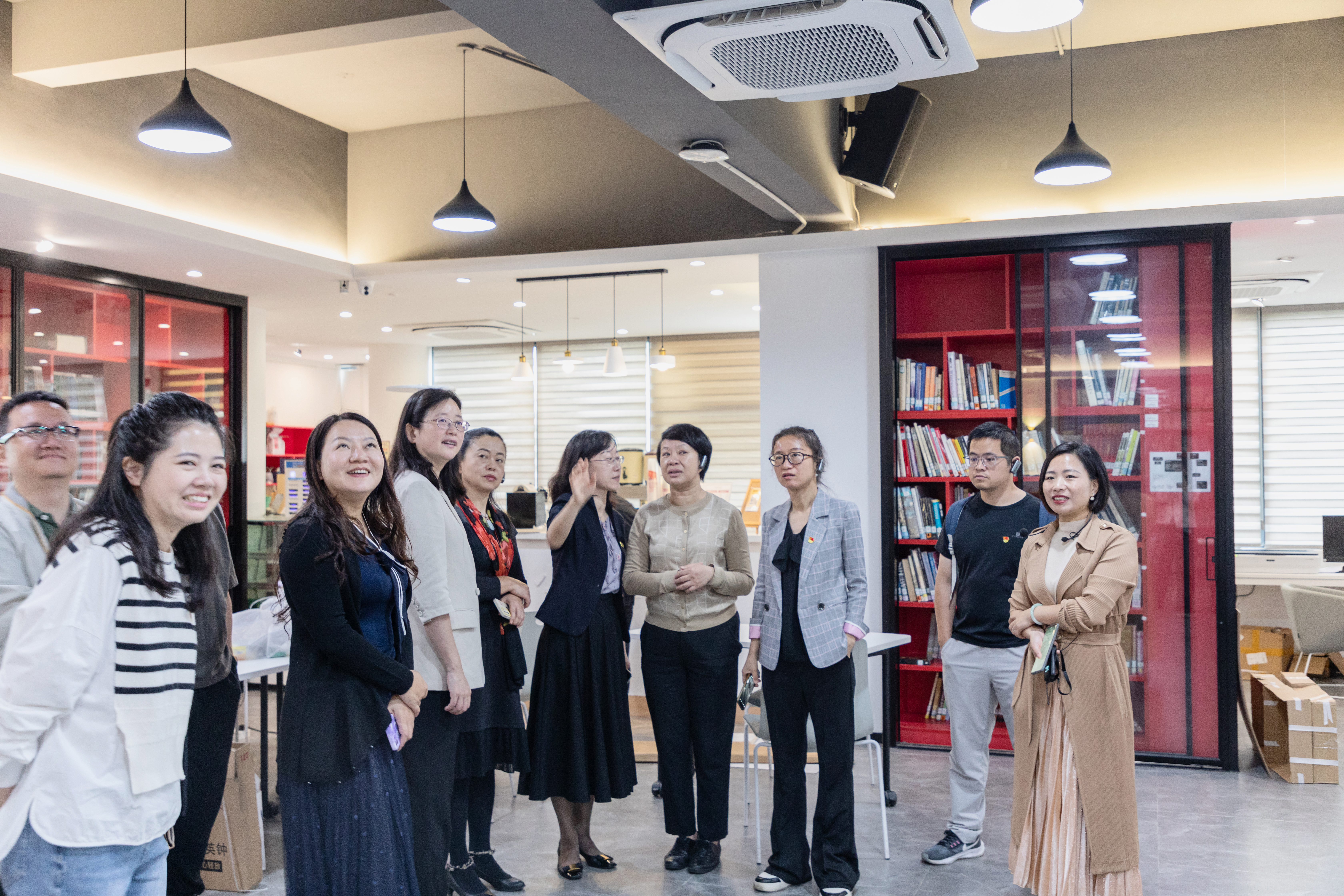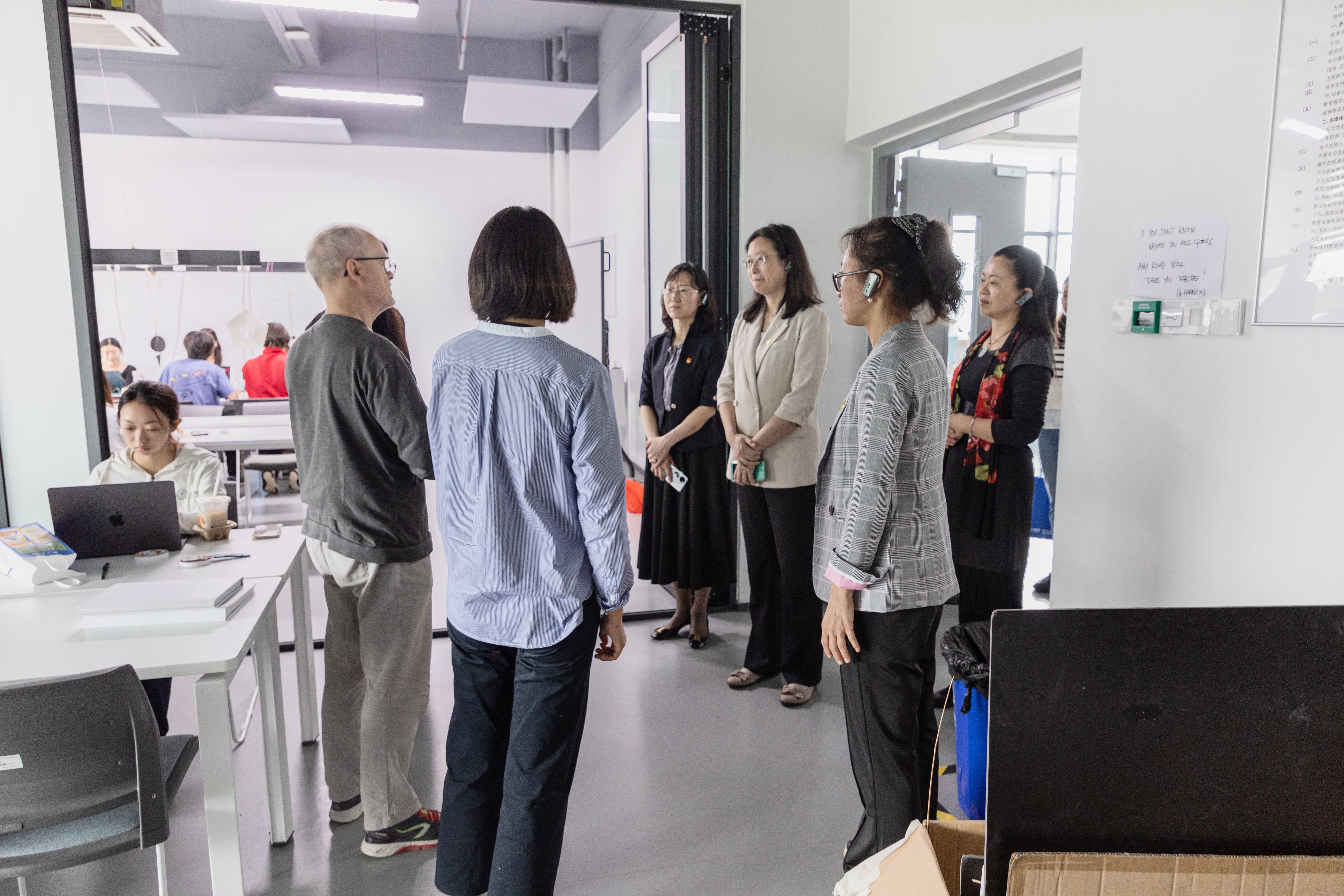 座谈会前,师生们一同参观创意与创新学院教学中心、实训中心、图书馆、第一课堂等办学场地,与工作人员和任课老师互动交流教学、科研、管理经验。