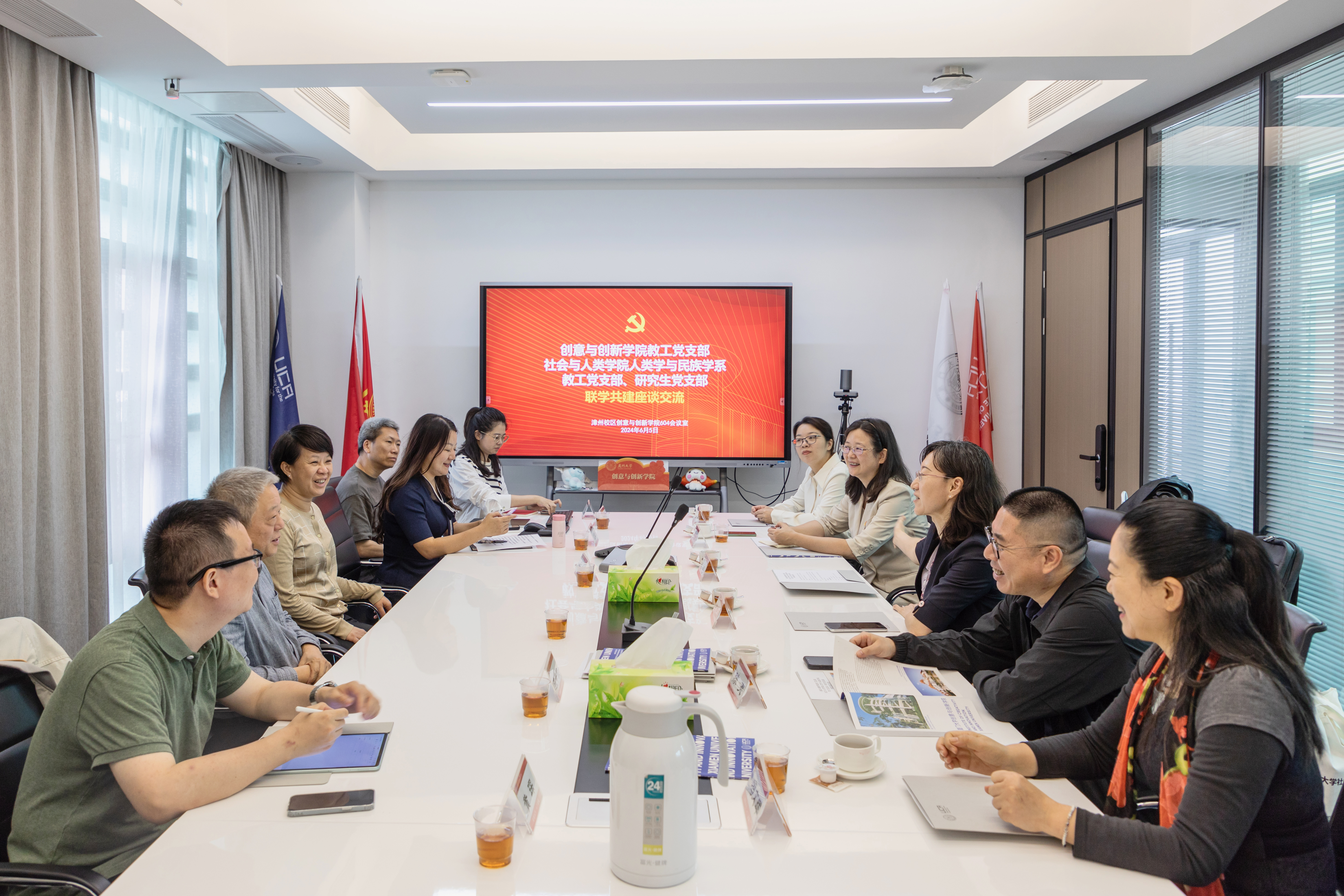 6月5日上午,社会与人类学院党委组织人类学与民族学系教工党支部、人类学与民族学系研究生党支部同创意与创新学院教工党支部开展联学共建。两院三支部聚焦“党建引领推动跨学科交叉融合”这一议题,在党建工作、新文科建设、人才培养、科学研究以及社会服务等方面展开深入交流。社会与人类学院党委书记王晓丽,创意与创新学院党总支书记王艺、院长秦俭以及两院党政领导、支部书记、委员、党员代表等参加活动。