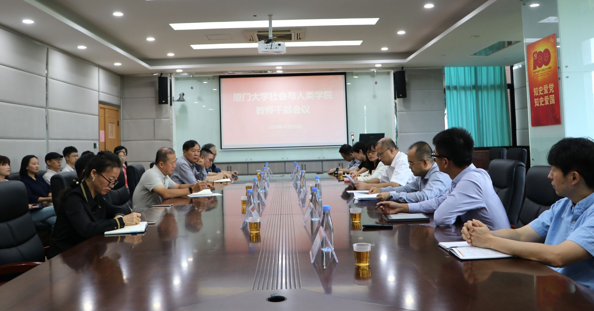 2025年10月29日上午 ,校党委在海韵行政楼A302会议室召开 社会与人类学院教师干部会议。 校党委常务副书记林东伟,校党委常委、组织部部长黎永强出席会议。 社会与人类学院领导班子成员 、党委委员 、教职工等参加会议。会议由黎永强主持。
