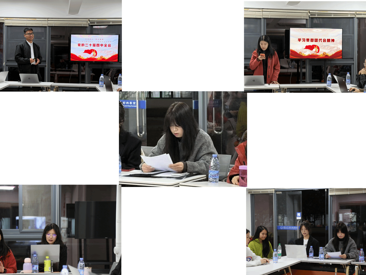 12月22日,学院学生会、本科生团总支、宣传中心在芙蓉十三“一站式”空间召开专题学习。本科生团总支组织部负责人申璐菲围绕党的二十届四中全会精神进行领学,带领大家学习了党的二十届四中全会的重大意义、核心要义与实践要求,并结合社会发展与治理的相关理论,引导学生骨干进一步明晰青年一代在国家未来发展中的责任担当。