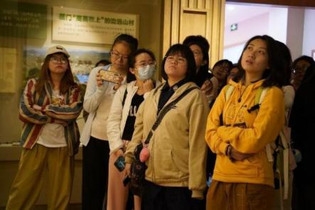高山党校初心使命馆,是同学们开启“高山初心足迹”调研实践的首站。“地瓜当粮草,孩子当背包”“交通靠走,通讯靠吼,治安靠狗”一度是白交祠村、军营村的真实写照。而今在“山上戴帽,山下开发”“既要种茶种果,也别忘了森林绿化”等发展思路的引领下,白交祠村和军营村以初心为笔,以实干为墨,一手抓经济、一手抓生态,扶贫扶智、振奋精神。“茶乡来了总书记”的故事,生动讲述了“总书记的高山情缘”,流露着共产党人为人民谋幸福的初心使命。在参观过程中,同学们深入学习白交祠村和高山村的村落变迁史与发展史,感叹在党的领导下乡村发生的翻天覆地的巨变,更为坚定为乡村发展贡献力量的决心。