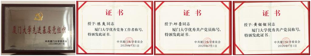 2020年7月1日,为庆祝中国共产党成立99周年,进一步发挥党组织的战斗堡垒作用和党员的先锋模范作用,学校党委表彰了一批优秀共产党员、优秀党务工作者和先进基层党组织。学院社会学系与社会工作系教工联合党支部获“先进基层党组织”称号,学院党委副书记陈夷获“优秀党务工作者”称号,学院行政教工党支部党员邱莹、社会工作系研究生党支部党员黄俪俪获“优秀共产党员”称号。