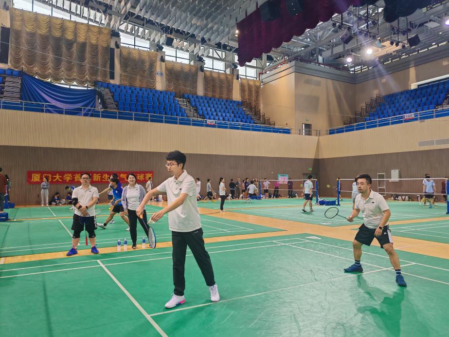首日比赛在翔安校区综合体育馆羽球馆举行。我院教师先后对阵海洋与地球学院1队、机关部门工会队、附属翔安医院队。赛场上,老师们不畏强敌、奋发拼搏,以精彩的表现赢得场边观众阵阵喝彩。虽然队伍最终未能进入半决赛,但老师们通过比赛历练,赛出了水平、精进了技能、促进了交流,展现了我院师生热爱体育、积极向上的良好风貌。