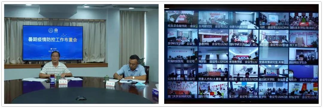 30日下午和晚上,厦门大学分别召开暑期疫情防控工作布置会和新冠肺炎疫情防控工作领导小组会议,传达、落实福建省、厦门市有关会议精神,研究部署下阶段工作,加强学校疫情防控。