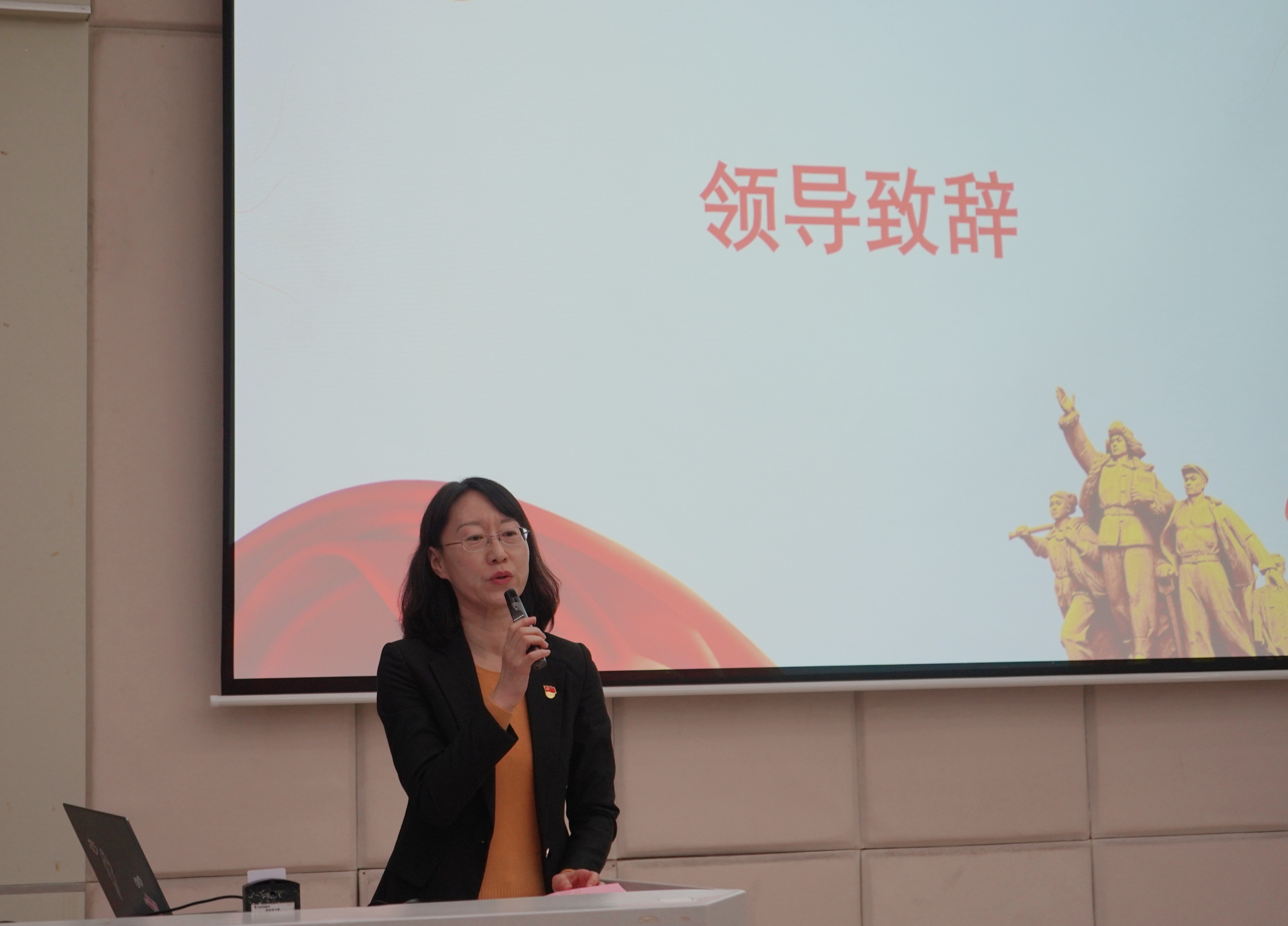 王晓丽为大赛致辞。她指出,举办红色影视作品配音大赛是深入学习贯彻落实党的二十大精神和学校第十二次党代会精神的举措。通过配音表演,引导青年学生们深刻感受红色影视作品的内涵,体会先辈们前仆后继为革命胜利、人民幸福、民族复兴而团结奋斗的真挚情感,引领新时代的青年学生从党的百余年峥嵘岁月中汲取和传承红色精神。