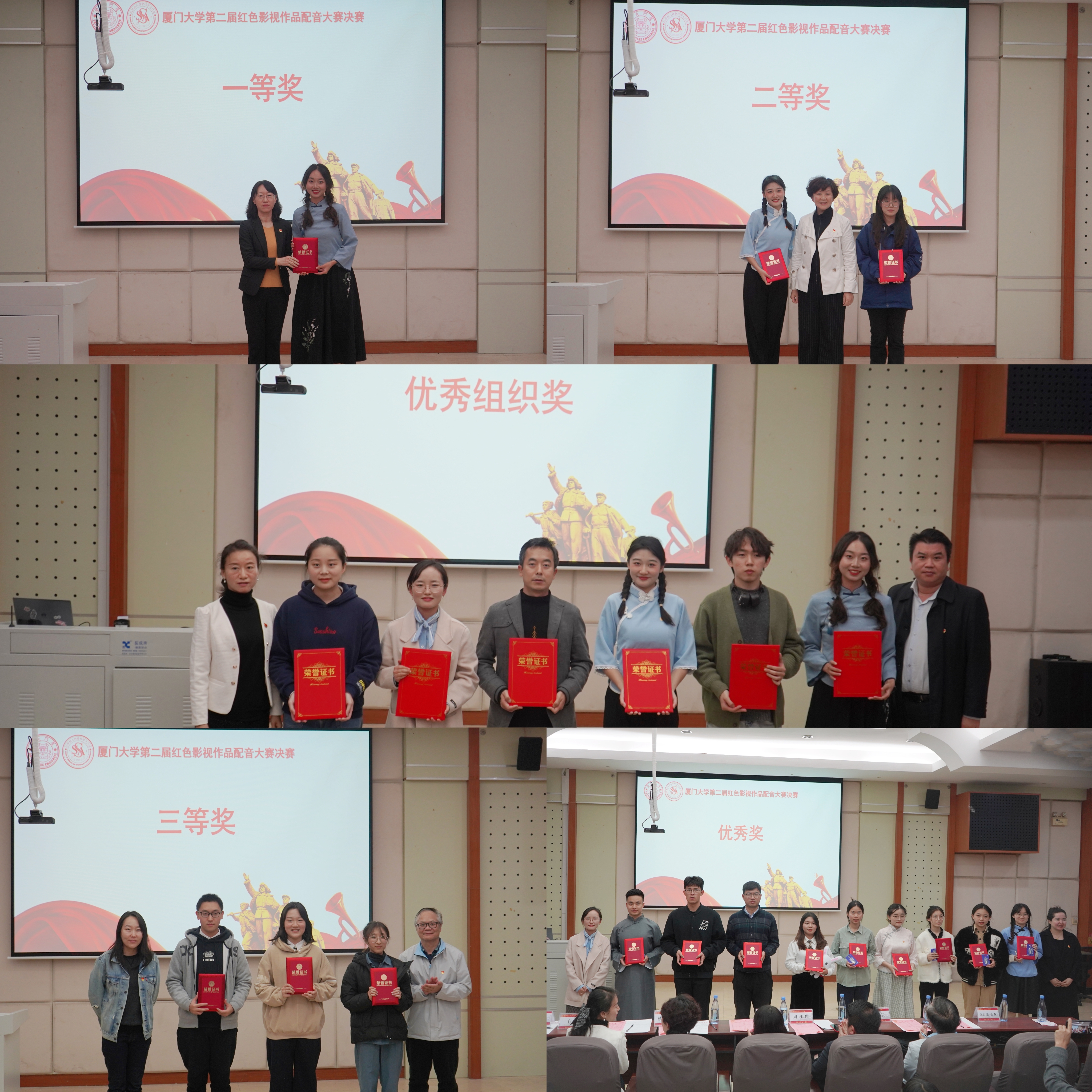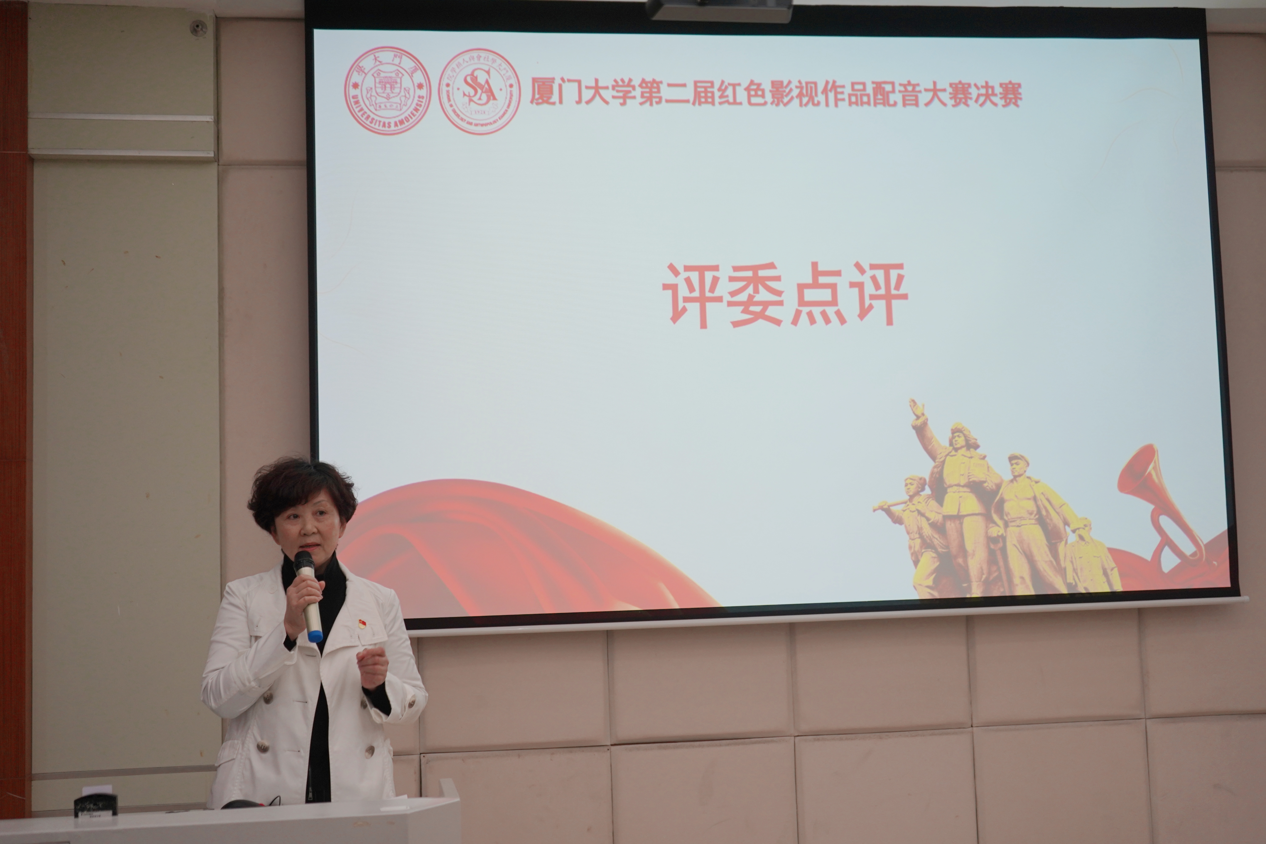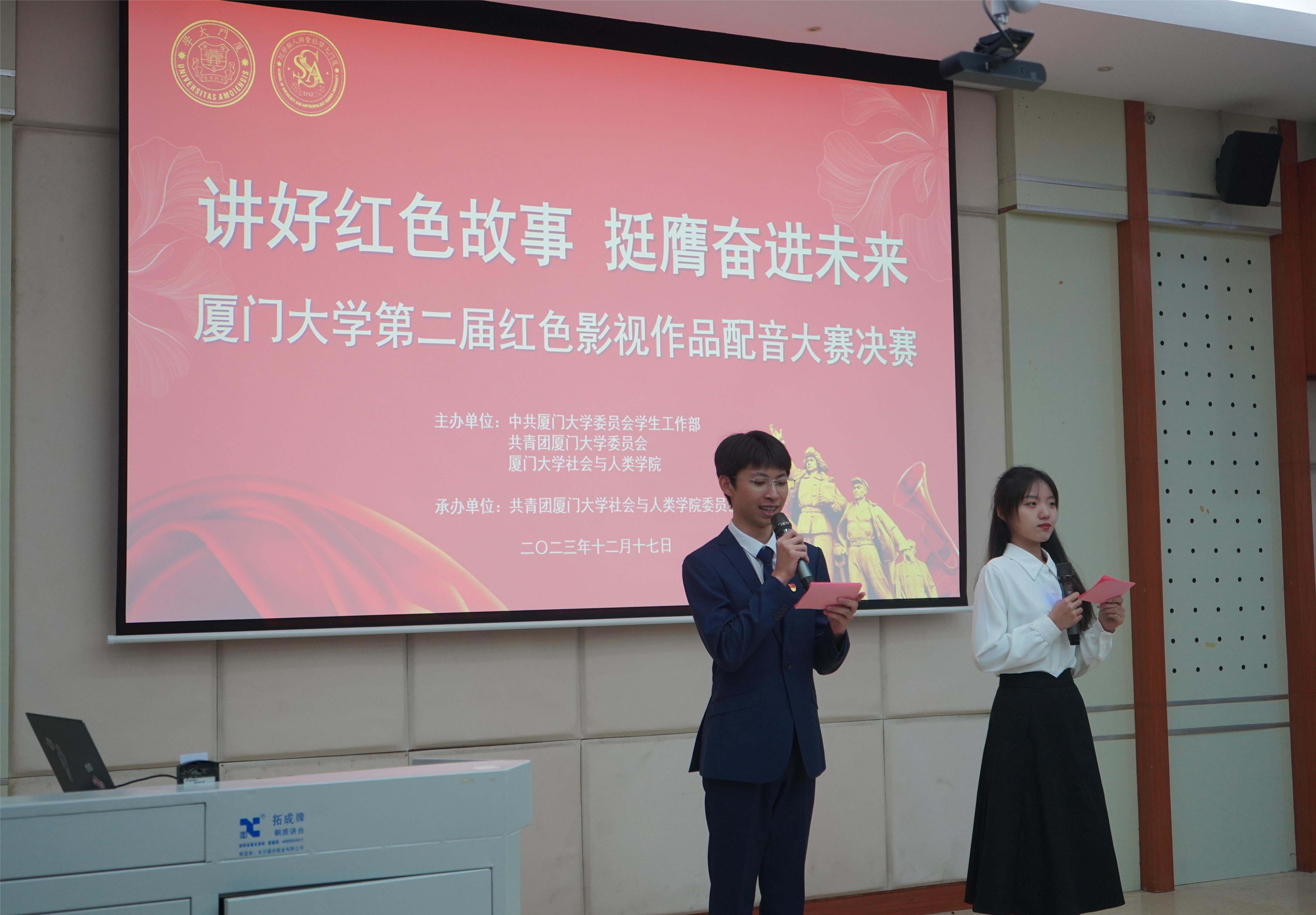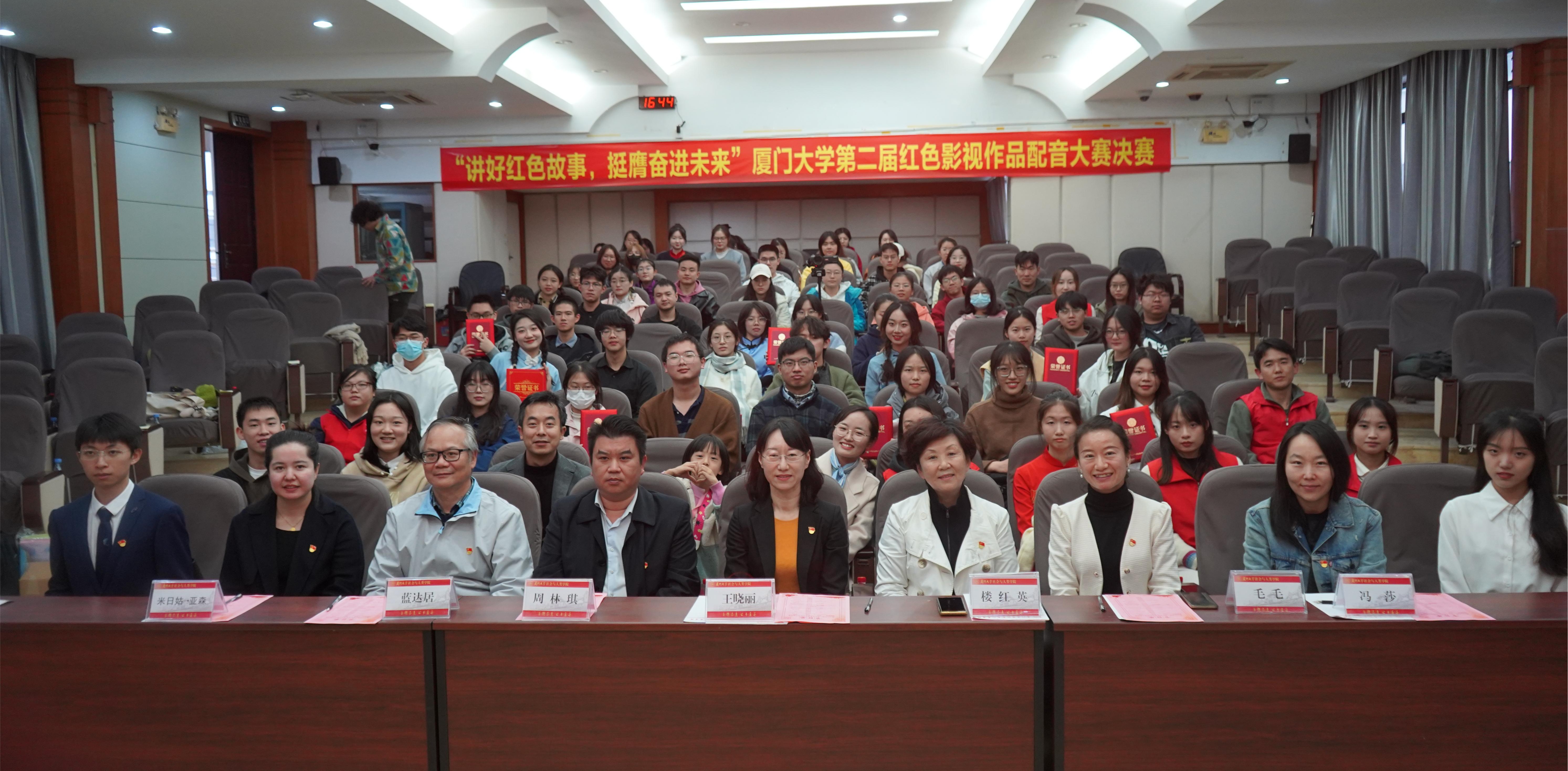 12月17日下午,由中共厦门大学委员会学生工作部、共青团厦门大学委员会、厦门大学社会与人类学院共同主办的厦门大学第二届红色影视作品配音大赛决赛在海韵教学楼504报告厅顺利举行。厦门大学社会与人类学院党委书记王晓丽、厦门大学专职督导员楼红英、厦门大学团委副书记周林琪、厦门大学社会与人类学院党委副书记毛毛、厦门大学社会与人类学院副教授蓝达居、厦门大学创意与创新学院副教授冯莎、厦门大学学生工作部米日姑·亚森作为本次大赛的嘉宾和评委莅临现场指导。