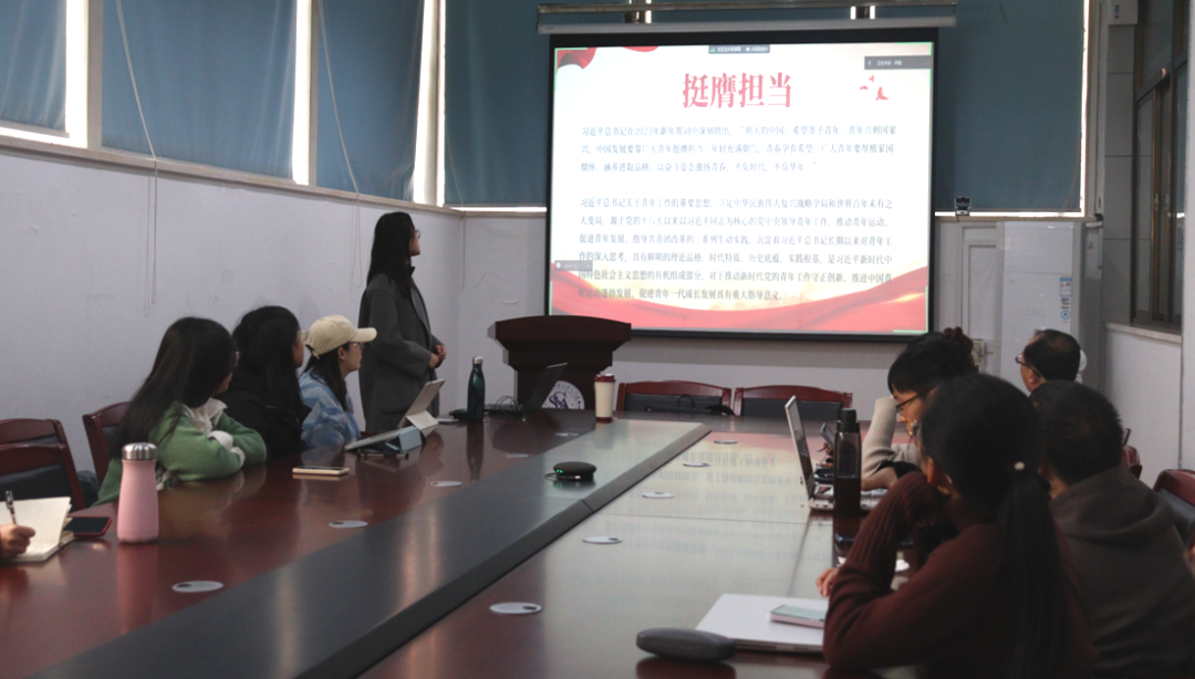 邓向黎同学首先领学了习近平总书记对青年的殷切期望,并向同学们介绍了本次活动的主题“强国有我 挺膺担当”。