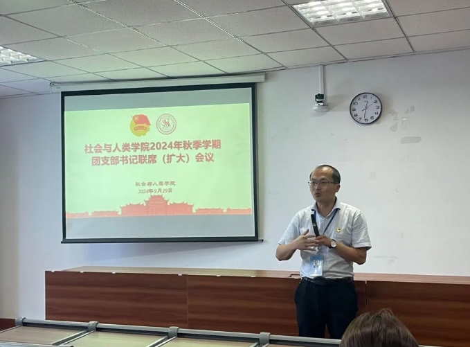 2024年9月29日,社会与人类学院秋季学期第一次团支书联席(扩大)会议暨秋季团校开班仪式在曾呈奎楼208举行,会议由学院原团委书记王安胜老师主持,学院本科生辅导员黄诗玲参加会议。