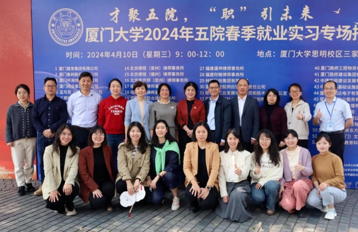 为深入学习贯彻党的二十大精神,全面落实党中央、国务院对高校毕业生就业创业工作的决策部署和教育部《关于做好2024届全国普通高校毕业生就业创业工作的通知》,4月10日上午,“才聚五院,‘职’引未来”——厦门大学2024年五院学生就业实习专场招聘会于三家村广场举行。