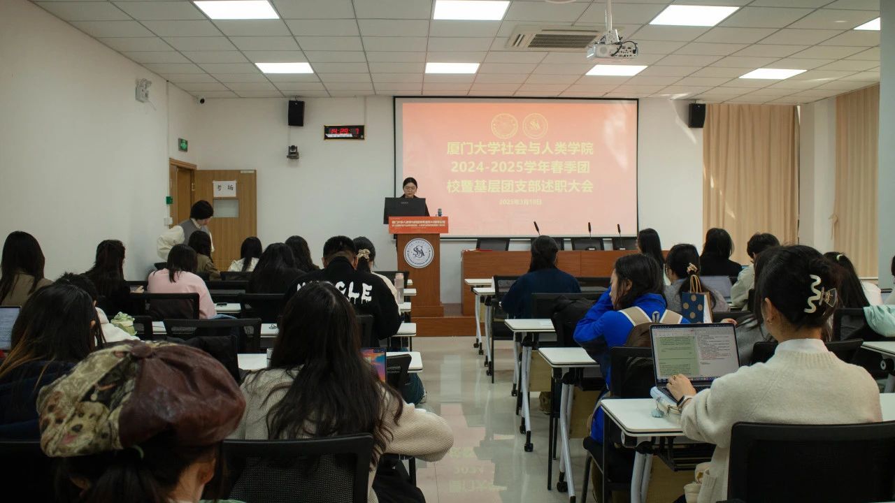为深入贯彻习近平总书记关于青年工作的重要论述精神,进一步强化新时代背景下团的基层组织建设,着力提升团组织的核心能力,充分发挥共青团作为党的得力助手和坚实后备军的关键作用,并坚定不移地推进从严治团原则,切实强化团干部队伍建设,激发团支部工作的热情、主动性与创新活力,我院于2025年3月10日在海韵园A栋103会议室举行基层团组织书记述职大会。本科生党支部书记黄诗玲、本研23个团支部书记及相关支委参加会议。会议由24级社会学类专业本科生曲卓雅主持。