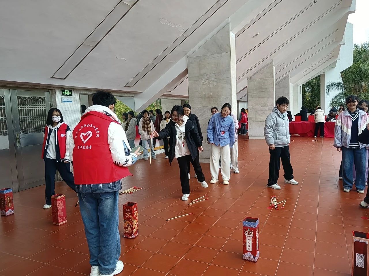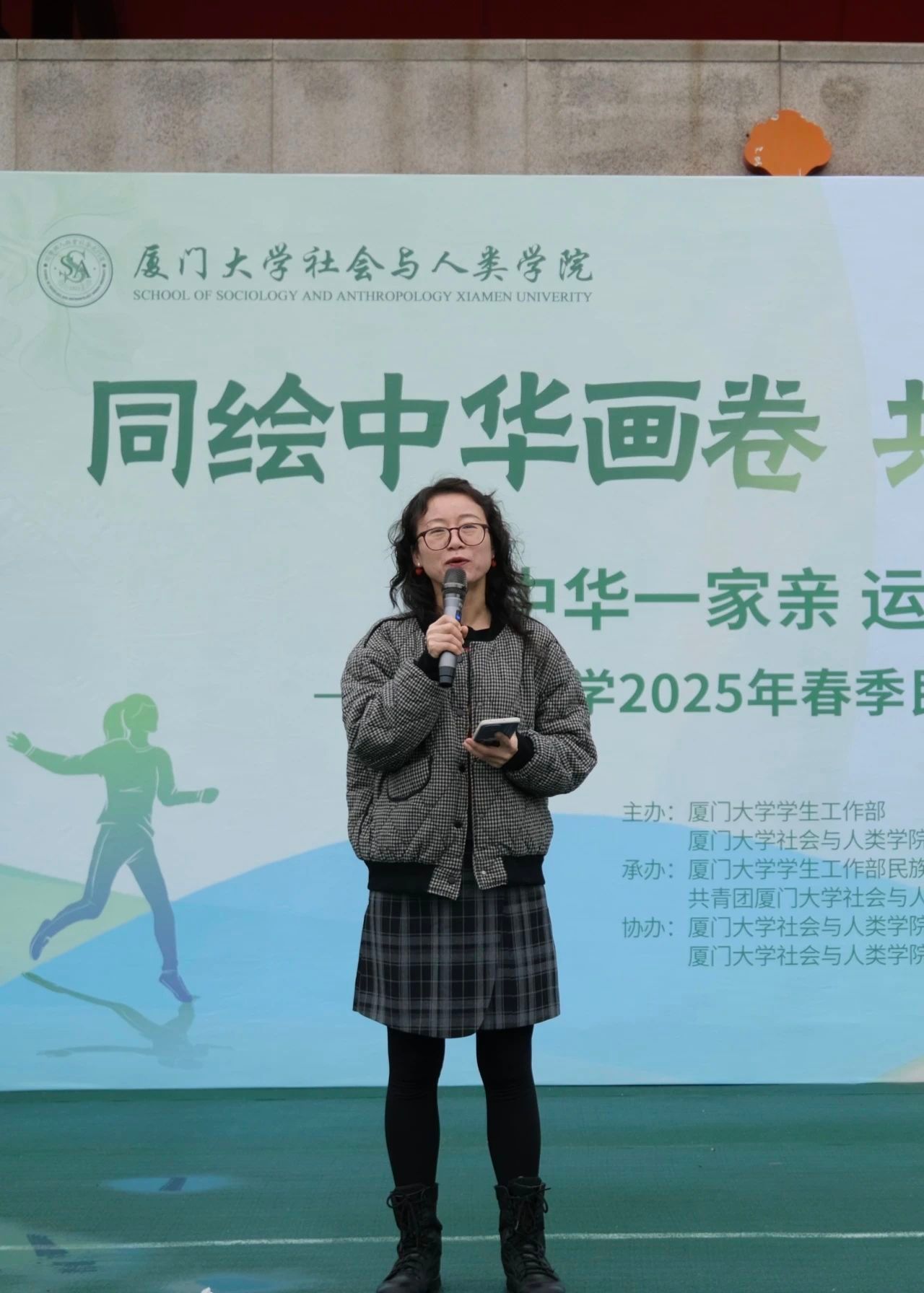 3月30日下午,厦门大学2025年春季民俗趣味运动会在演武场拉开帷幕。此项活动已成功举办两届,本届共有来自20个不同学院的30支队伍、150人自由组队报名参加,涉及汉族、壮族、黎族、维吾尔族、东乡族、回族、土家族、布依族、水族、藏族、穿青、蒙古族、瑶族、满族等多个民族的本研学生。三月的春天虽有寒意,但师生们的热情不减。赛场上,活动组织单位的教师代表社会与人类学院党委副书记毛毛致辞,对工作人员表示感谢,对参赛者表达欢迎;工作人员和志愿者们认真工作,用真诚和热情服务每一支参赛队伍和每一名参赛学生;而参赛者们用青春的活力诠释团结协作精神,在愉悦的欢声笑声中传承着民俗文化。