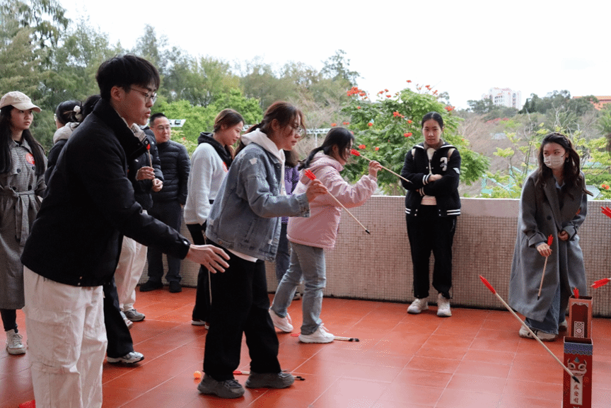 传递乒乓球,接棒投壶,体悟团结与协作。随着小球的传递,参赛者们互相鼓励,相互配合。投壶环节中,同学们默契接棒,增进情谊。