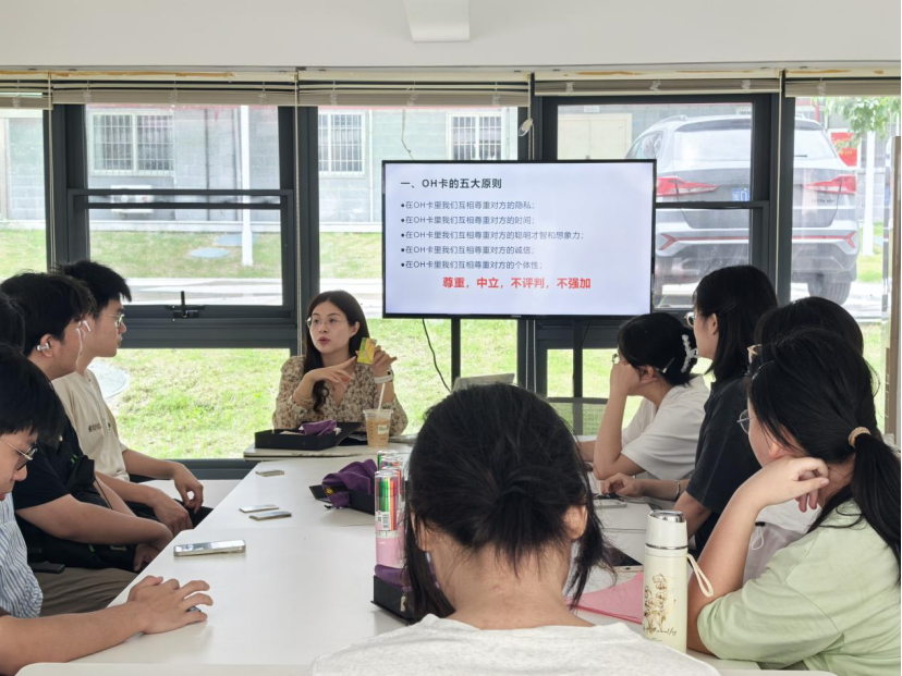 活动伊始,李婷为同学们介绍了OH卡的起源、原理和使用方法。随后,同学们依次抽取图卡,并分享了自己当下的心情或状态。小小的卡片,成为大家情绪的载体,每一张都诉说着独特的故事,一场真诚又温暖的心灵交流就此拉开帷幕。
