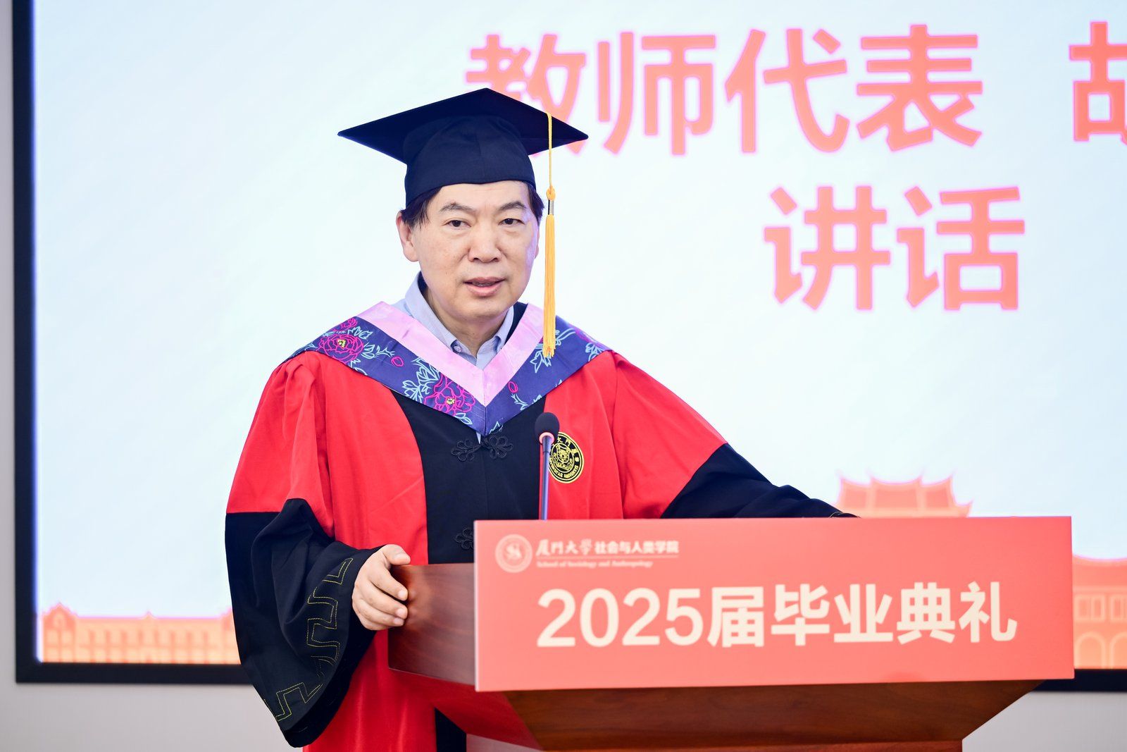 6月16日下午,厦门大学社会与人类学院2025届毕业典礼在海韵园A201报告厅隆重举行。社会与人类学院党委书记洪海松,院长邓燕华教授,原院长胡荣教授,校基层党建工作联络员、学院关工委常务副主任谢银辉,党委副书记陈夷,副院长徐延辉、冯文晖,以及部分教职工代表和2025届毕业生们参加了本次活动。典礼由学院党委副书记毛毛主持。