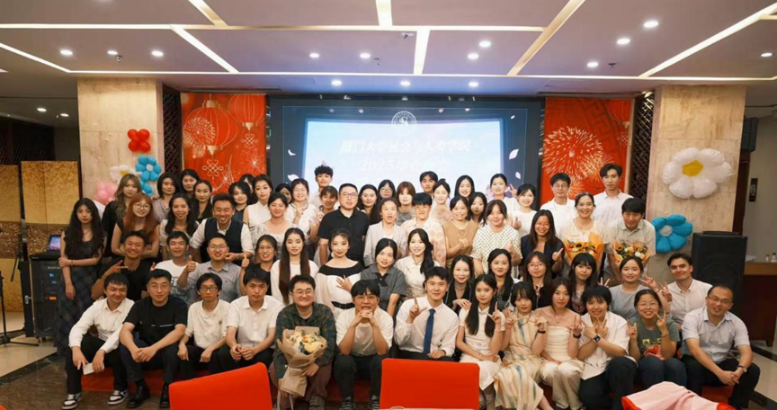 6月16日晚上,厦门大学社会与人类学院2025届毕业晚会在大丰苑举行,学院部分教职工及2025届全体毕业班同学参加晚会。本次晚会由2022级社会工作研究生甘坤霭和2022级社会学研究生何旭扬主持。