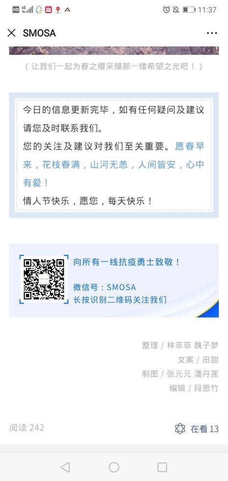 “担当者共克时艰志愿者团队”线上宣传组信息收集组我院2018级本科生魏子梦积极进行线上宣传