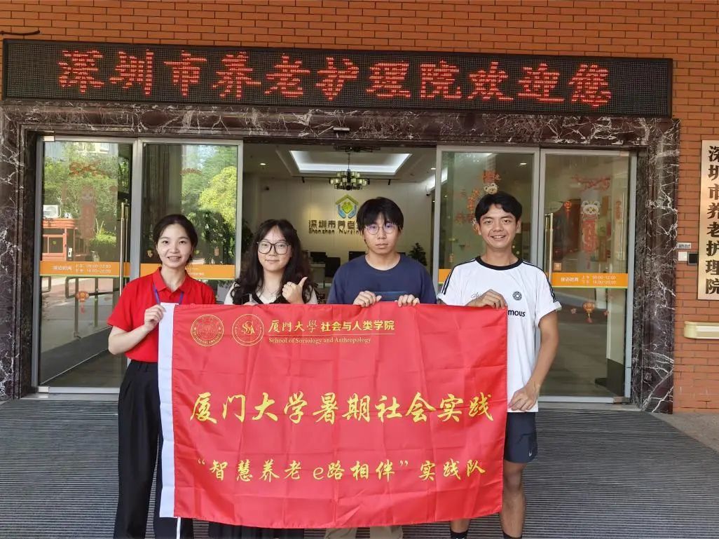 习近平总书记在党的二十大报告中提出“实施积极应对人口老龄化国家战略,发展养老事业和养老产业,优化孤寡老人服务,推动实现全体老年人享有基本养老服务”。当下,人口老龄化已然成为我国发展的挑战,智慧养老的出现与发展成为破局关键。2025年7月7日至11日,厦门大学社会与人类学院“智慧养老,e路相伴”暑期社会实践队在邓燕华教授的指导下,前往广东深圳进行实地调研,深入探究深圳市智慧养老的技术应用现状及发展前景。