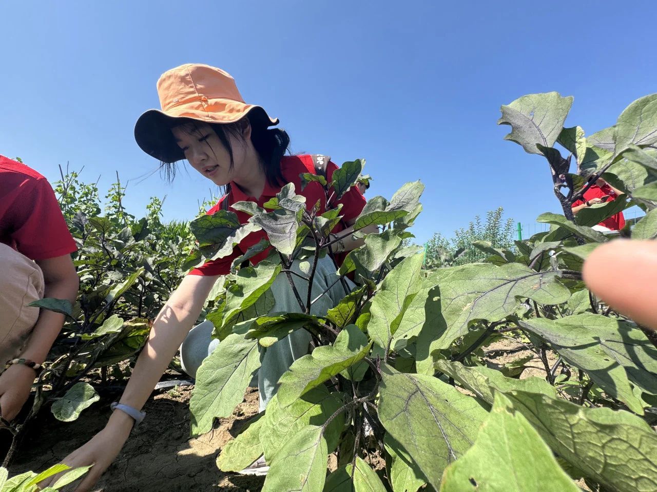 7月22日的晨光里,实践队的身影穿梭在杨家村的大棚与田埂间。蟠桃大棚内,黄书记正和农户们俯身筛选鲜果,红透的蟠桃在竹篮里堆叠成小山,分拣、装盒、封箱,每一个动作都藏着丰收的喜悦。队员们捧着问卷凑上前,纸页上的字迹被晨露浸得温润,“大姐,您觉得合作社统一销售后,收入比以前稳了吗?”“大爷,统一技术指导时,学起来费劲不?”农户们手上的活计不停,嘴里笑着应答,指尖偶尔在问卷上指指点点,沾满桃毛的手掌与青春的笔迹在晨光里轻轻触碰,果香混着泥土气,成了最动人的调研注脚。“合作社统一种苗、统一销售,我们只管把果子种甜,收入比以前多了一大截!”一位大婶边装桃边笑,眼角的皱纹里盛着满足。