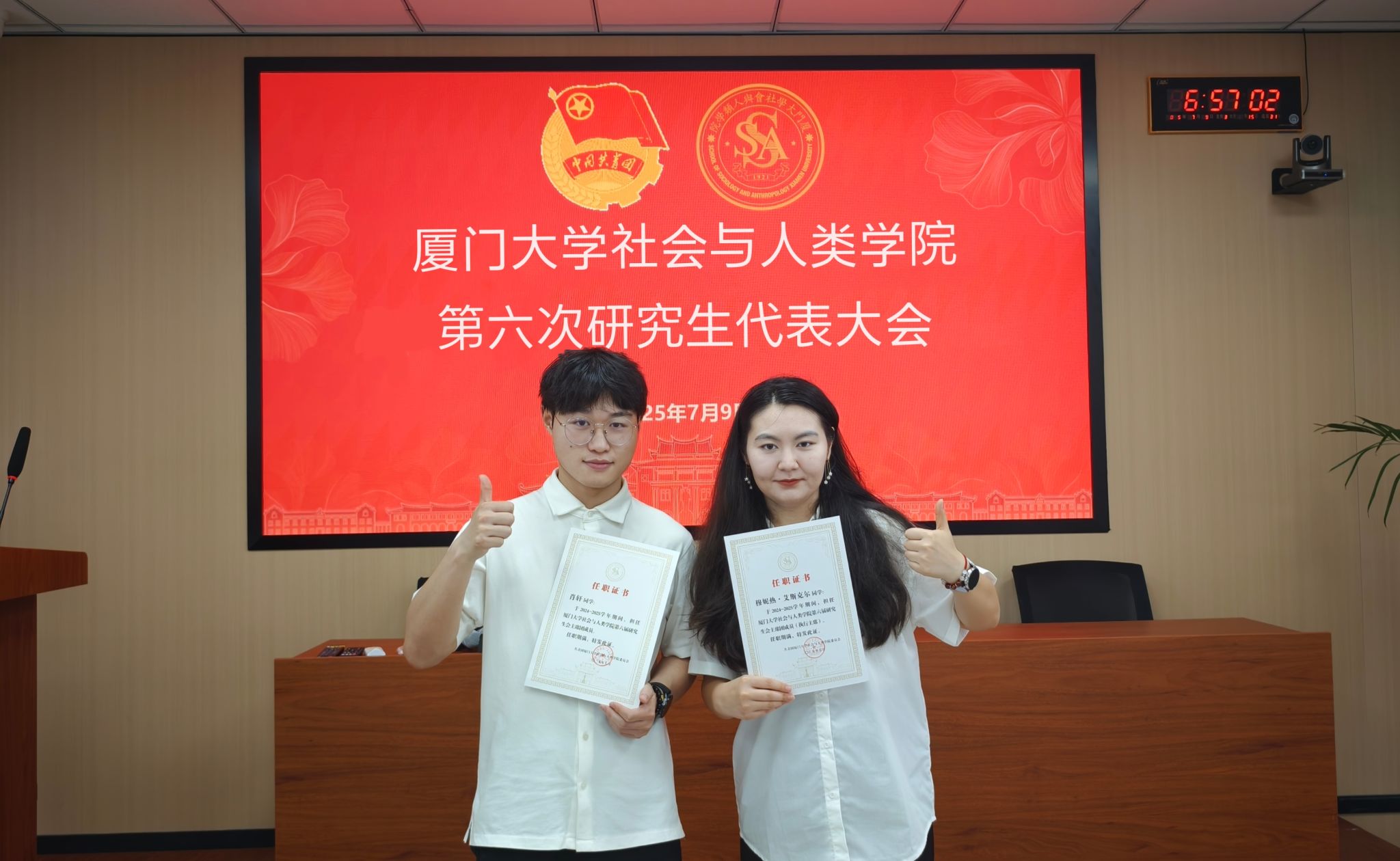 为树立典型、鼓励先进,更好地推动全校学生会组织工作开展,学校于2025年9月开展厦门大学2024-2025学年二级学生会、研究生会述职评议工作。经材料评审、现场评议、公示等环节,社会与人类学院研究生会(以下简称院研究生会)荣获厦门大学2024-2025学年“优秀院(直属系)研究生会”荣誉称号,社会与人类学院研究生会执行主席穆妮热·艾斯克尔荣获厦门大学2024-2025学年“优秀院(直属系)研究生会主席”荣誉称号。这是我院建院以来,研究生会和主要负责学生干部首次荣获此项殊荣。