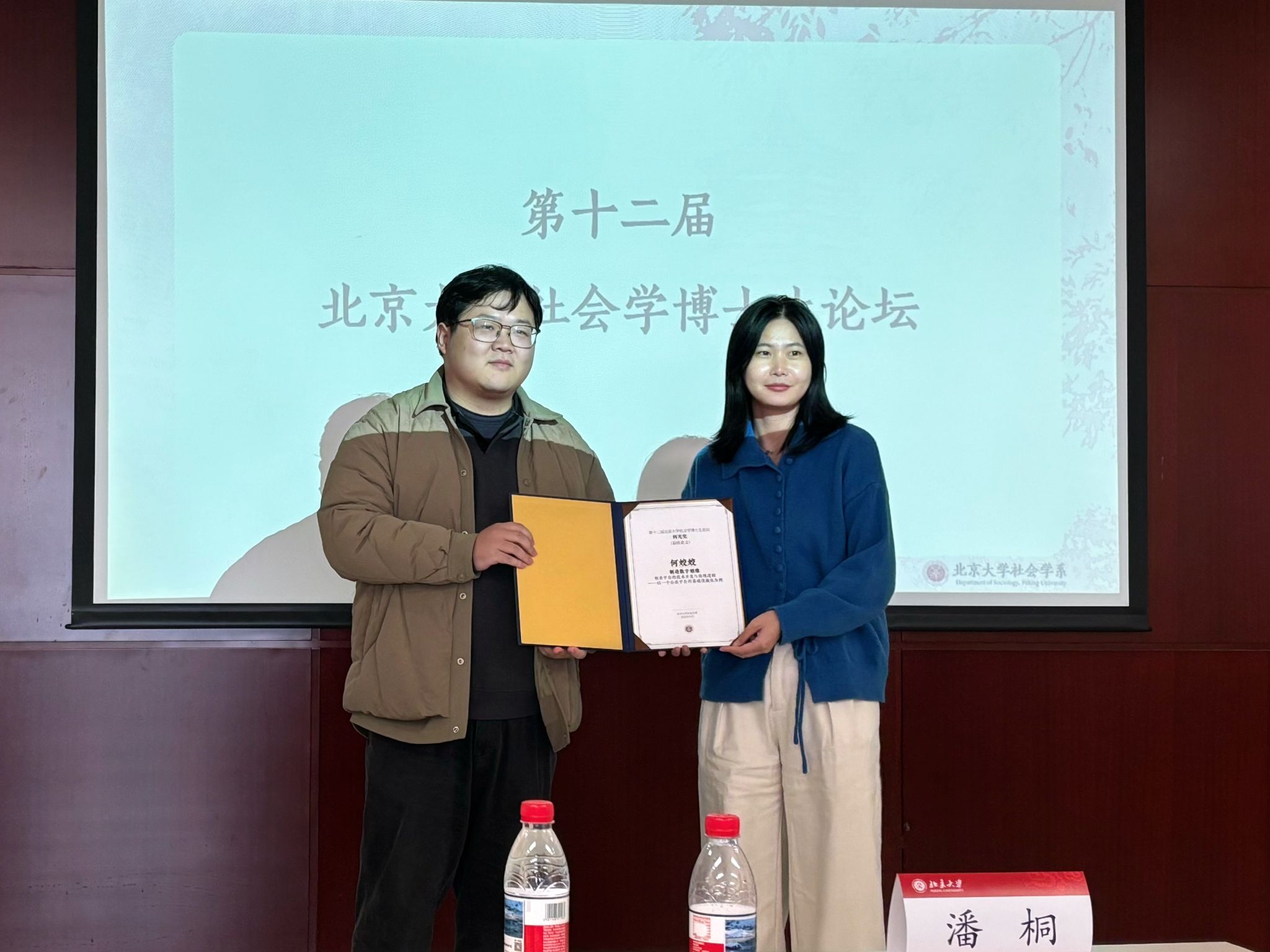 11月2日,第十二届北京大学社会学博士生论坛在北京大学成功举办。在本届论坛中,社会与人类学院2 024 级社会学博士研究生何姣姣提交的学术论文《制造数字姻缘:相亲平台的技术开发与伦理逻辑——以一个公益平台的基础设施化为例》,经论坛评审委员会严格评议, 荣获本届论坛最佳论文“辉光奖” 。