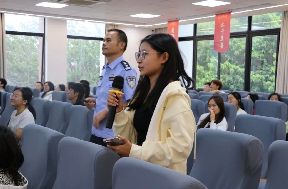 宣讲会设置了互动问答环节,通过情景模拟、知识问答等形式,检验同学们的学习成果,进一步巩固了防诈知识,现场气氛热烈,同学们积极参与,反响良好。