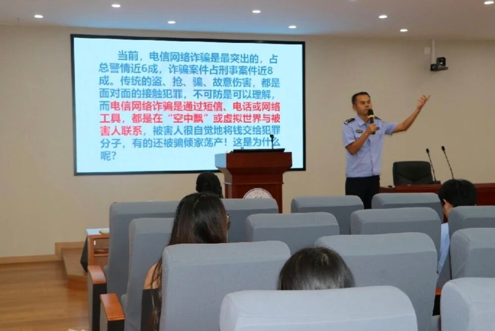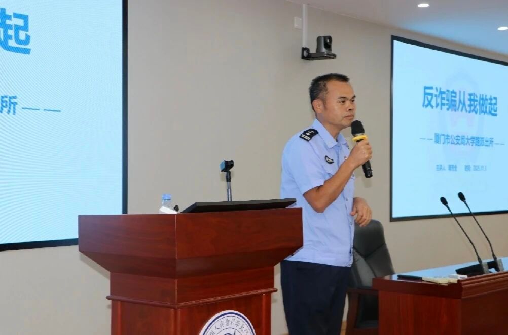 为切实增强大学生防范电信网络诈骗的意识与能力,营造安全、和谐、稳定的校园环境,11月3日,我院联合厦门市公安局大学路派出所开展防诈骗教育安全宣讲会。大学路派出所副所长蒋芳全警官应邀担任主讲,为同学们带来一场内容详实、案例生动、实用性强的反诈“公开课”。
