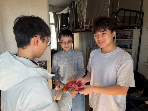 声声问候中,橙子的清香与同学们的笑脸交织,驱散了冬日的寒意。简短的话语承载着学院对同学们的深切关怀,也传递着并肩作战的力量。“太有心了!谢谢学院的温暖!”一名毕业班同学接过橙子后连声道谢。