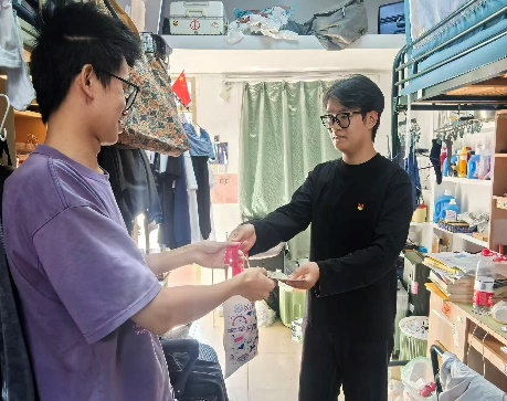 寒冬虽至,温情不减。12月17日中午,社会与人类学院本科生党支部党员组成爱心小队,佩戴党员徽章,走进本科毕业生宿舍,开展“‘橙’心祝福,心想事‘橙’”慰问活动,为毕业班同学们送上冬日的温暖与鼓励。